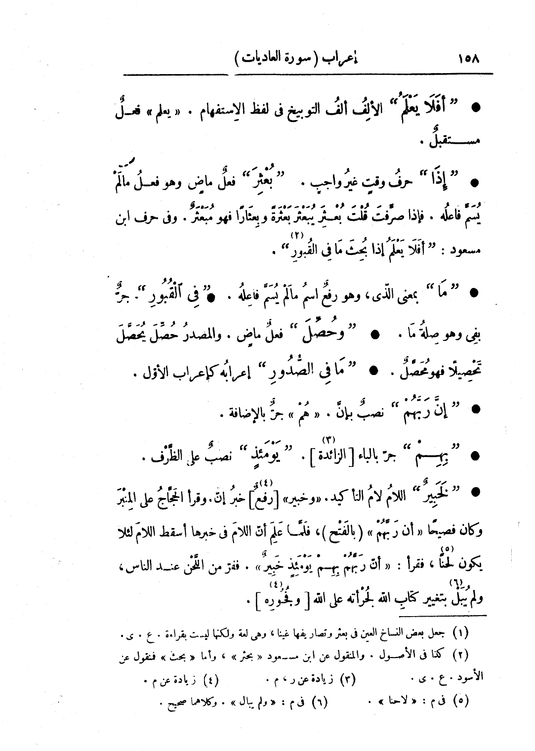• "لخبير" اللام لام التأكيد. «وخبير» [رفع] خبر إن. وقرأ الحجاج على المنبر وكان فصيحا «أن ربهم» (بالفتح)، فلما علم أن اللام في خبرها أسقط اللام لئلا يكون لحنا، فقرأ: «أن ربهم بهم يومئذ خبير». ففر من اللحن عند الناس، ولم يبل بتغيير كتاب الله لجرأته على الله [وفجوره].