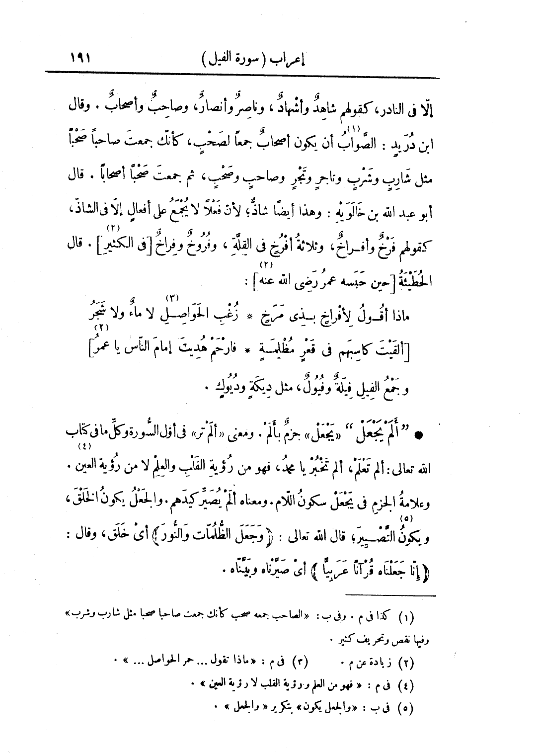 • "ألم يجعل" «يجعل» جزم بألم، ومعنى «ألم تر» في أول السورة وكل ما في كتاب الله تعالى: ألم تعلم، ألم تخْبر يا محمد، فهو من رؤية القلب والعلم لا من رؤية العين. وعلامة الجزم في يجعل سكون اللام. ومعناه ألم يصير كيدهم. والجعل يكون الخلق ويكون التصيير؛ قال الله تعالى: (وجعل الظلمات والنور): أي خلق، وقال: (إنا جعلناه قرآنا عربيا): أي صيرناه وبيناه.