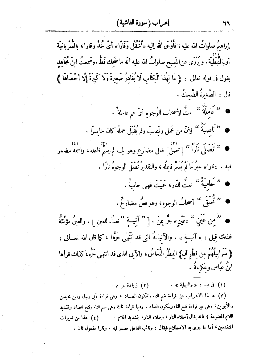 • "من عين" «عين» جر بمن. ["آنية" نعت للعين]. والعين مؤنثة فلذلك قيل: «آنية». والآنية التي قد انتهى حرها، كما قال الله تعالى: (سرابيلهم من قطران)، القطر النحاس، والآني الذي قد انتهى حره، كذلك قرأها ابن عباس وعكرمة.