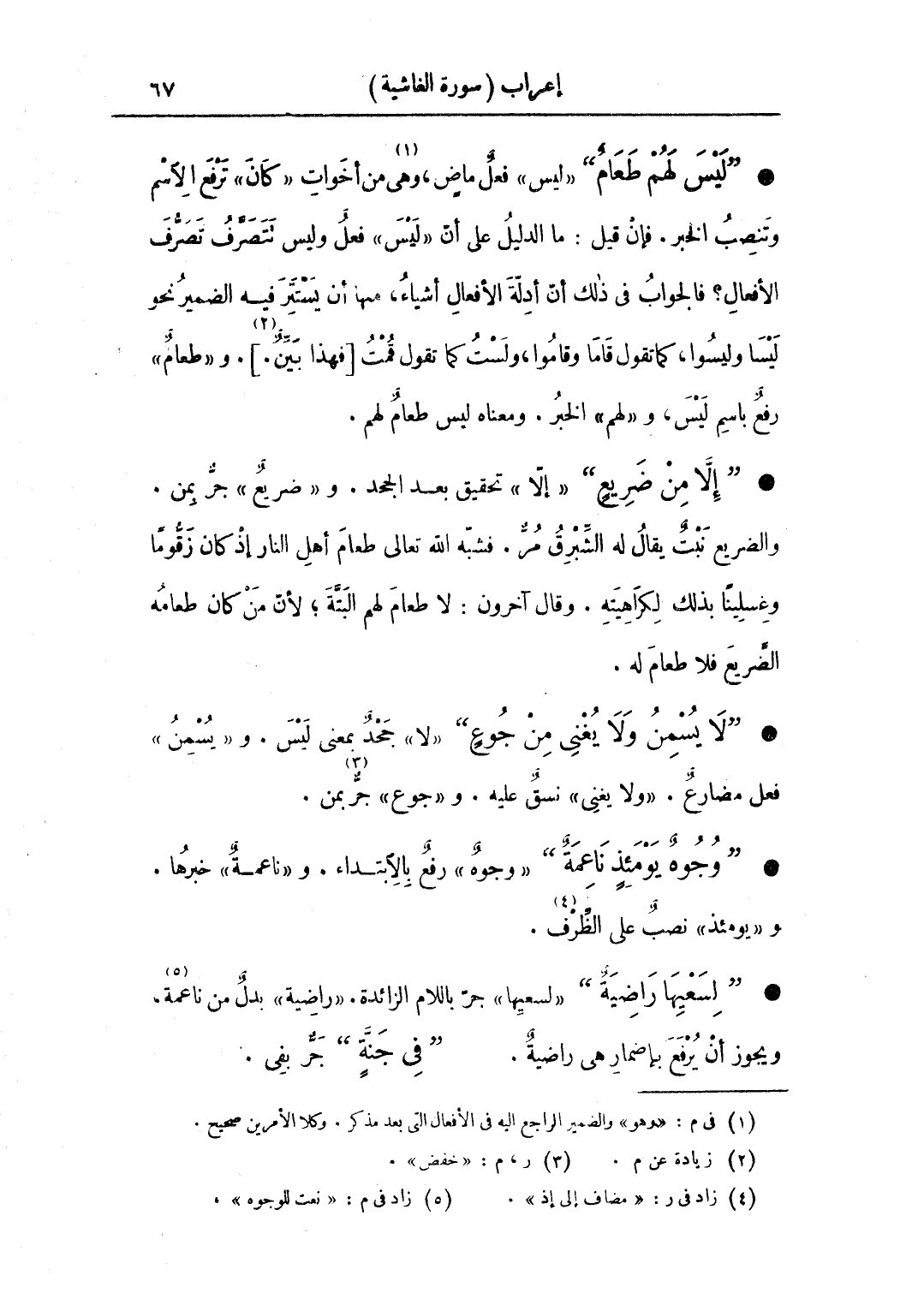 • "لسعيها راضية" «لسعيها» جر باللام الزائدة. «راضية» بدل من ناعمة، ويجوز أن يرفع بإضمار هي راضية. "في جنة" جر بفي.