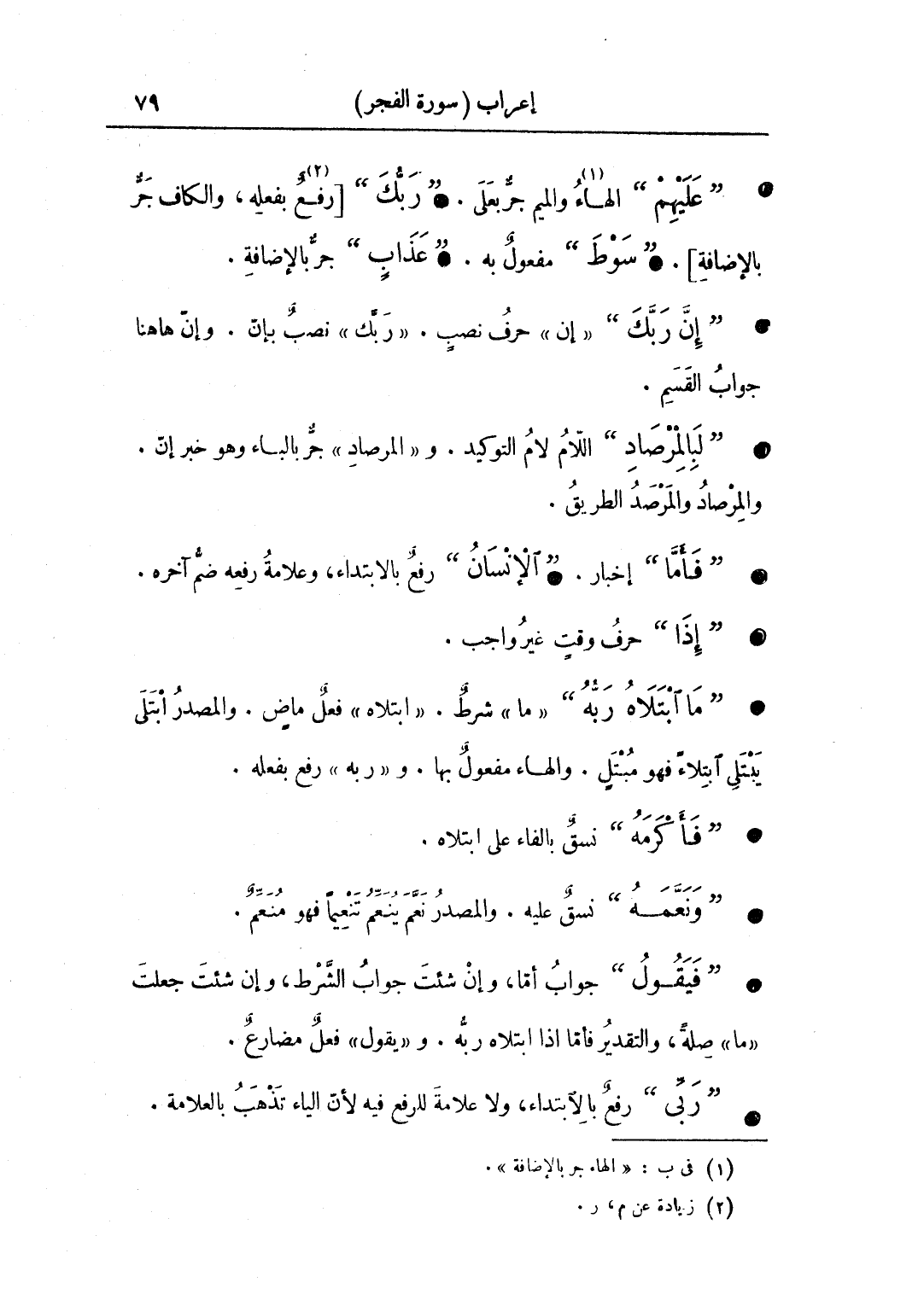 • "عليهم" الهاء والميم جر بعلى. "ربك" ربك [رفع بفعله، والكاف جر بالإضافة]. ... • "سوط" مفعول به. "عذاب" جر بالإضافة.