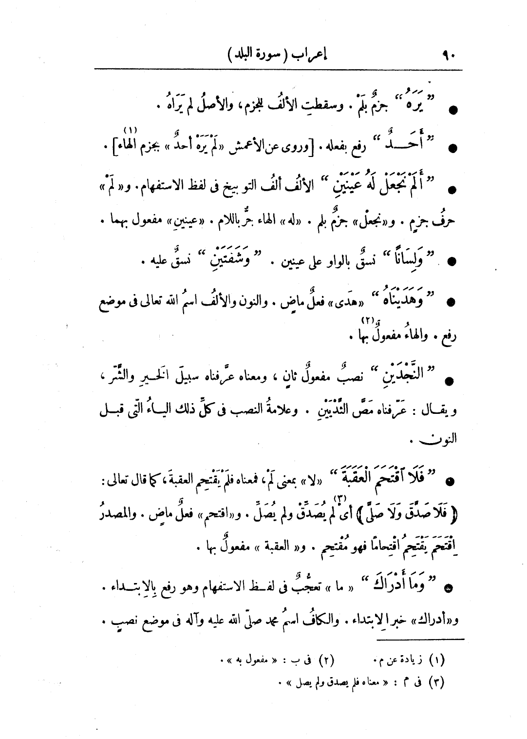 • "وهديناه" «هدى» فعل ماضٍ. والنون والألف اسم الله تعالى في موضع رفع. والهاء مفعول بها.
