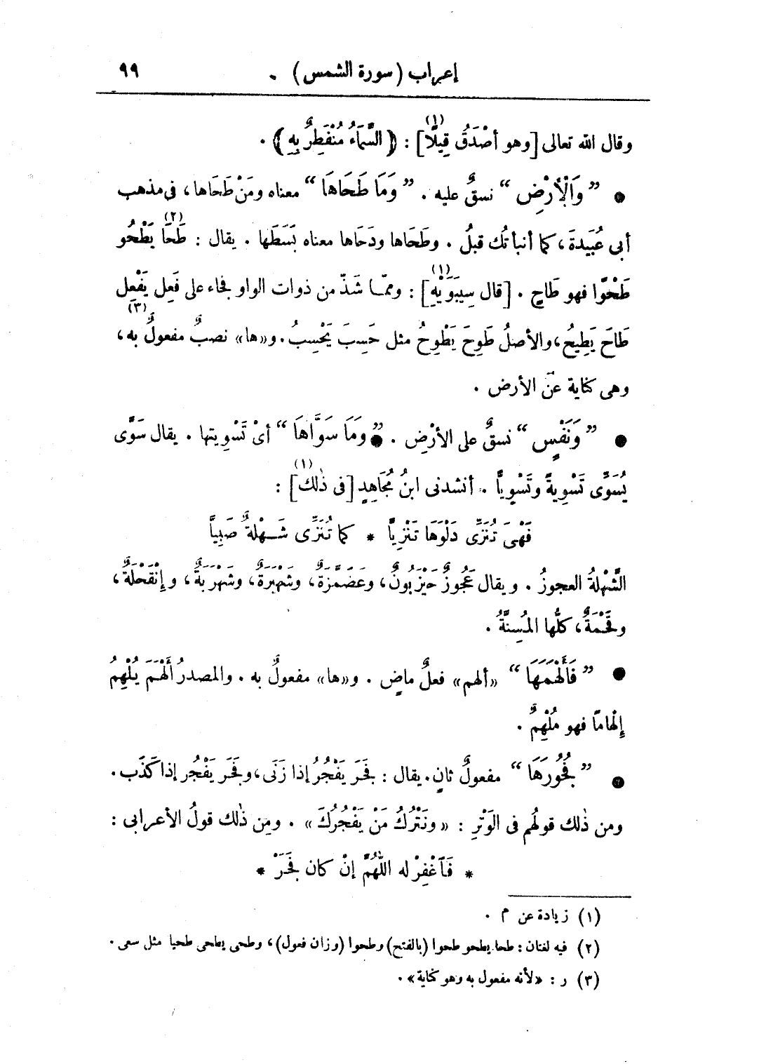 • "ونفس" نسق على الأرض. "وما سواها" أي تسويتها، يقال سوى يسوي تسوية وتسويا، أنشدني ابن مجاهد [في ذلك]: