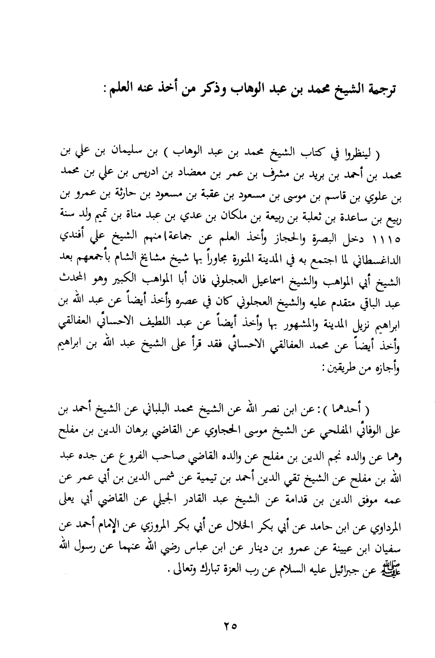 ترجمة الشيخ محمد بن عبد الوهاب وذكر من أخذ عنه العلم:
