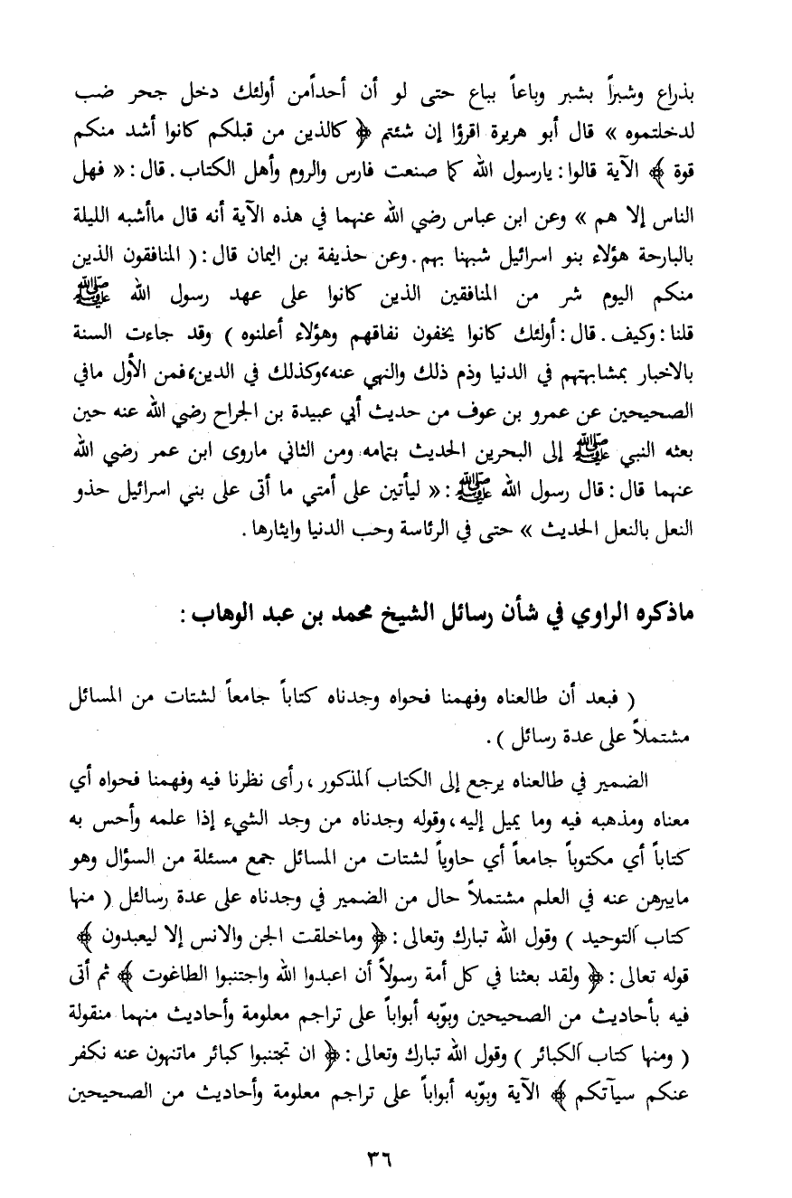 ما ذكره الراوي في شأن رسائل الشيخ محمد بن عبد الوهاب: