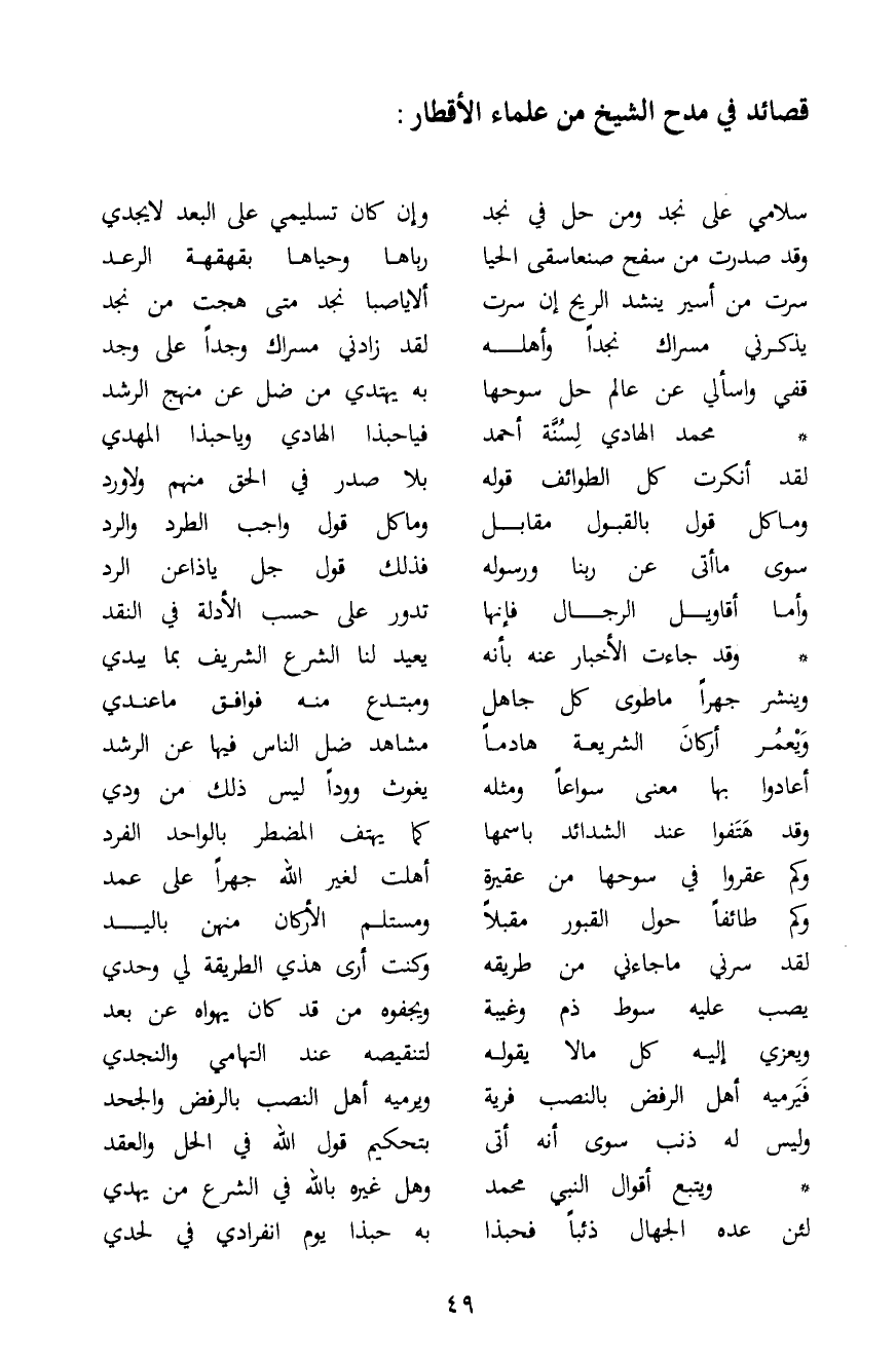 سلامي على نجد ومن حل في نجد ... وإن كان تسليمي على البعد لا يجدي