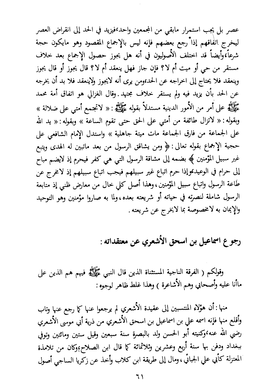رجوع إسماعيل بن اسحق الأشعري عن معتقداته: