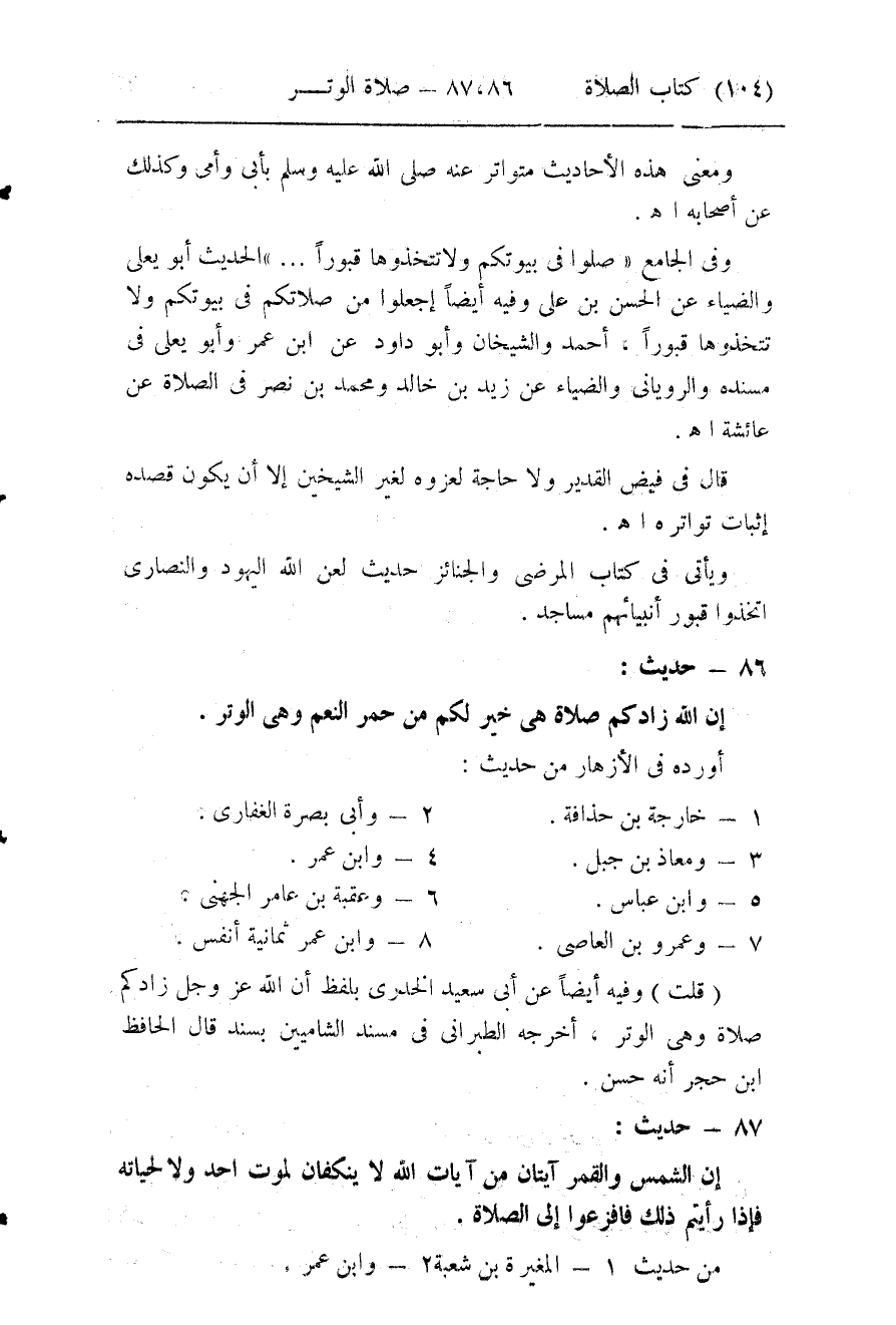 86- (إن الله زادكم صلاة هي خير لكم من حمر النعم وهي الوتر) .