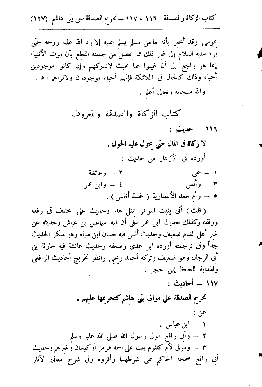 117- (تحريم الصدقة على موالي بني هاشم كتحريمها عليهم) .