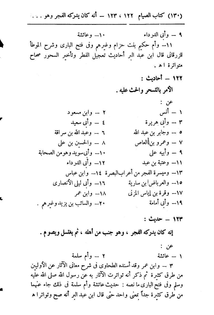 123- (أنه كان يدركه الفجر وهو جنب من أهله ثم يغتسل ويصوم) .