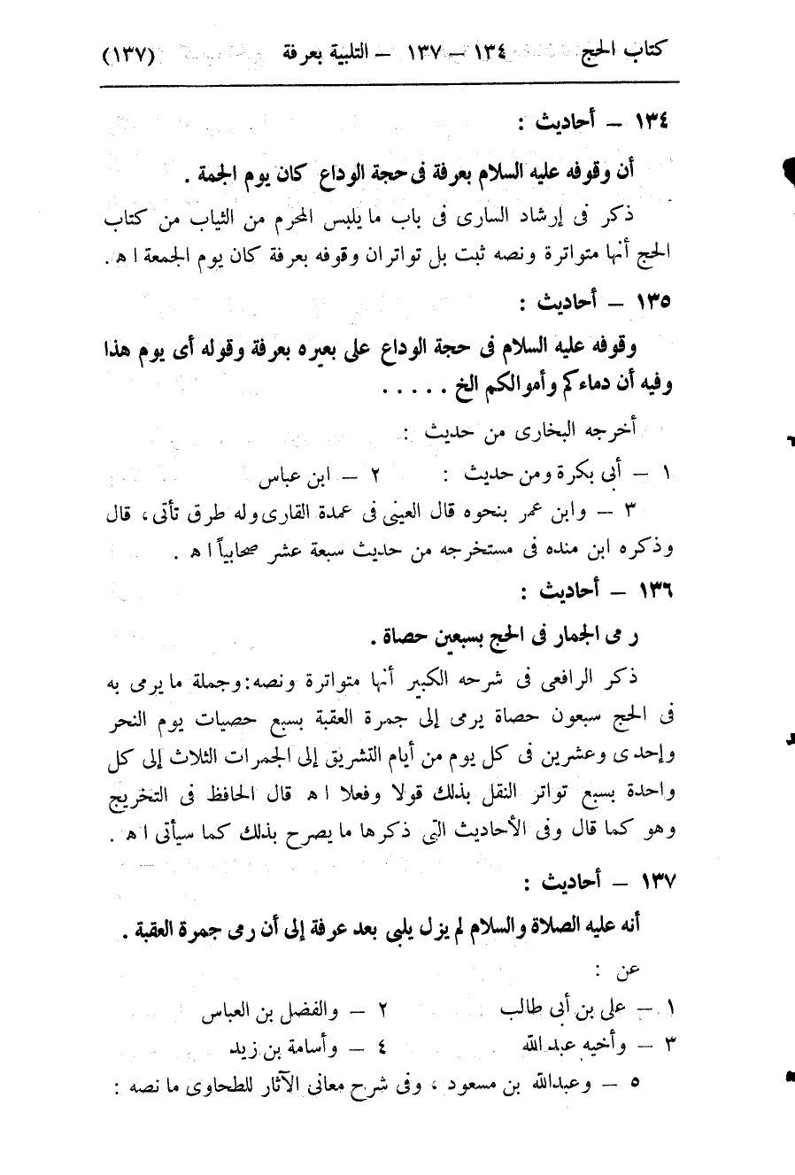 136- (رمي الجمار في الحج بسبعين حصاة) .