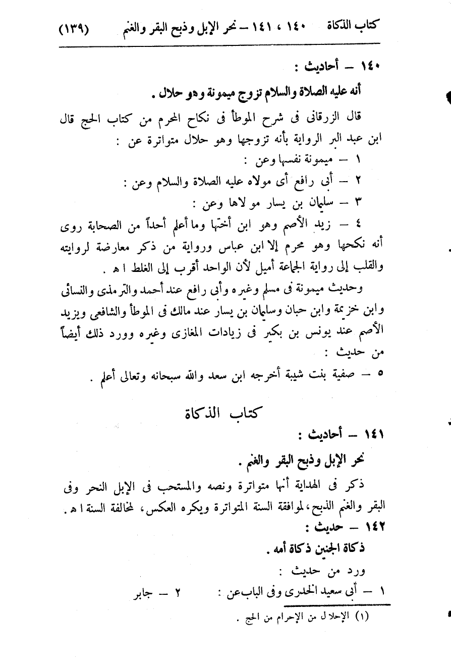 - قال الزرقاني في شرح الموطأ في نكاح المحرم من كتاب الحج قال ابن عبد البر الرواية بأنه تزوجها وهو حلال متواترة عن (1) ميمونة نفسها وعن (2) أبي رافع أي مولاه عليه الصلاة والسلام وعن (3) سليمان بن يسار مولاها وعن (4) يزيد الأصم وهو ابن أختها وما أعلم أحداً من الصحابة روى أنه نحكها وهو محرم إلا ابن عباس ورواية من ذكر معارصة لروايته والقلب إلى رواية الجماعة أميل لأن الواحد أقرب إلى الغلط اهـ.