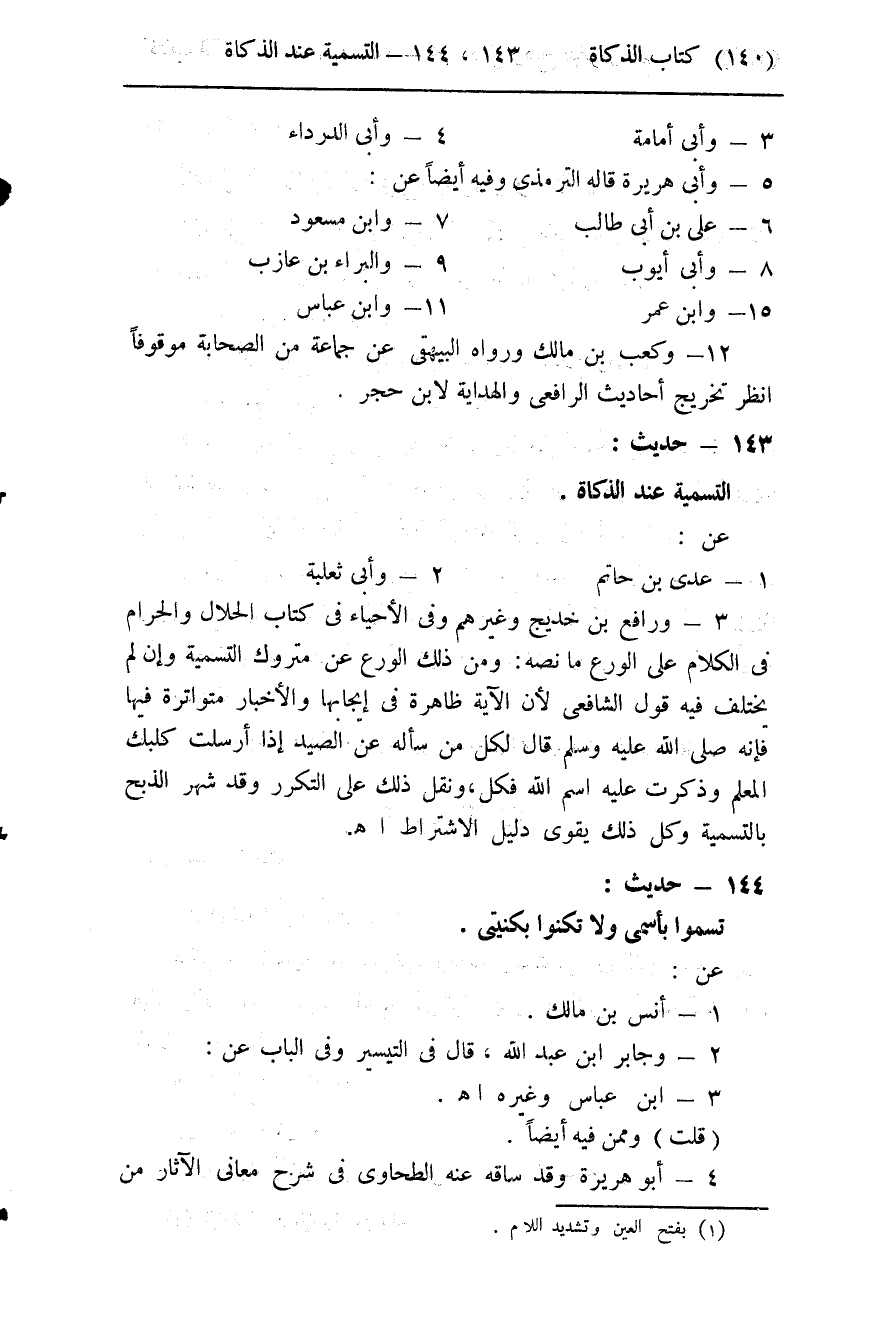 143- (التسمية عند الذكاة) .