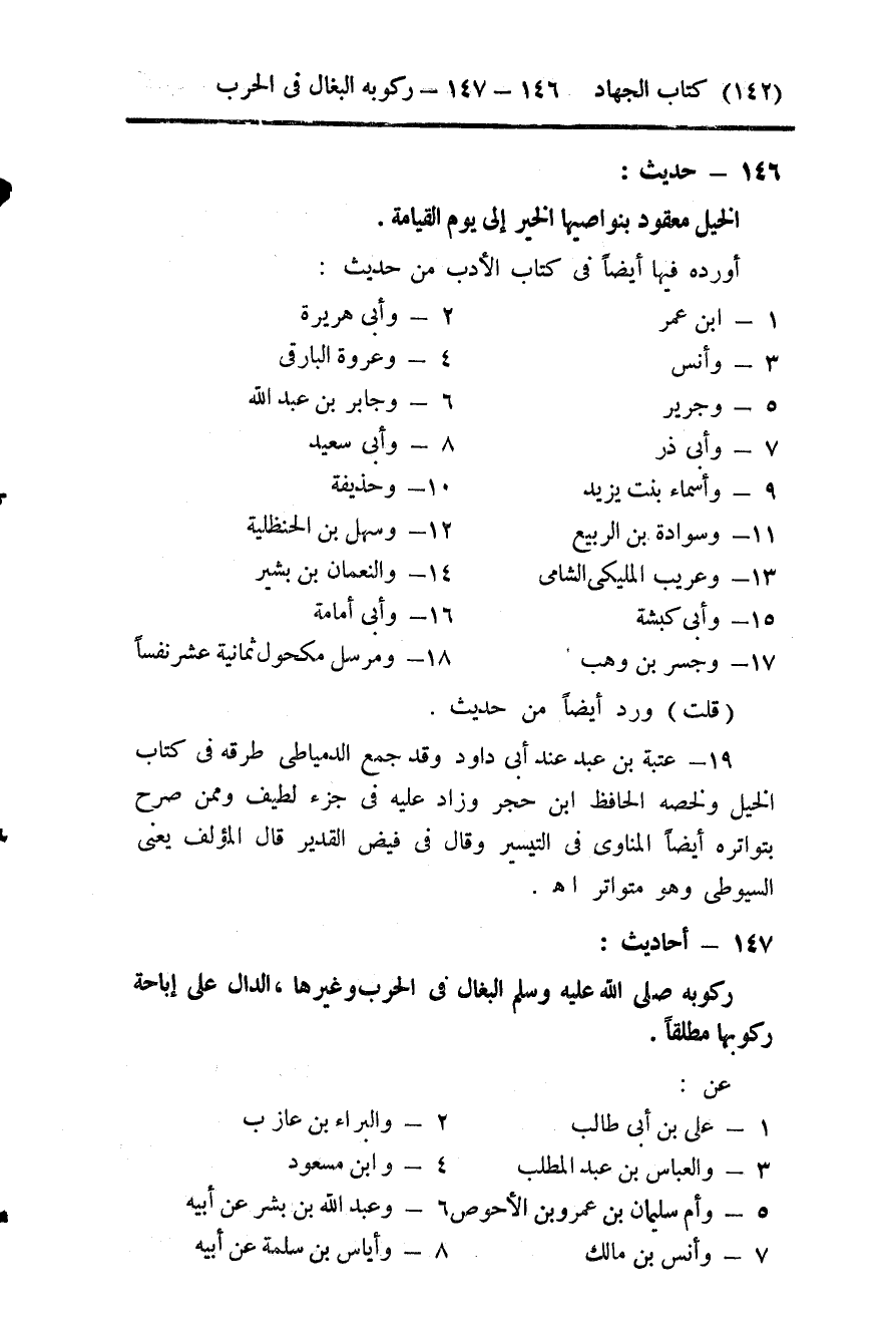 146- (الخيل معقود بنواصيها الخير إلى يوم القيامة) .