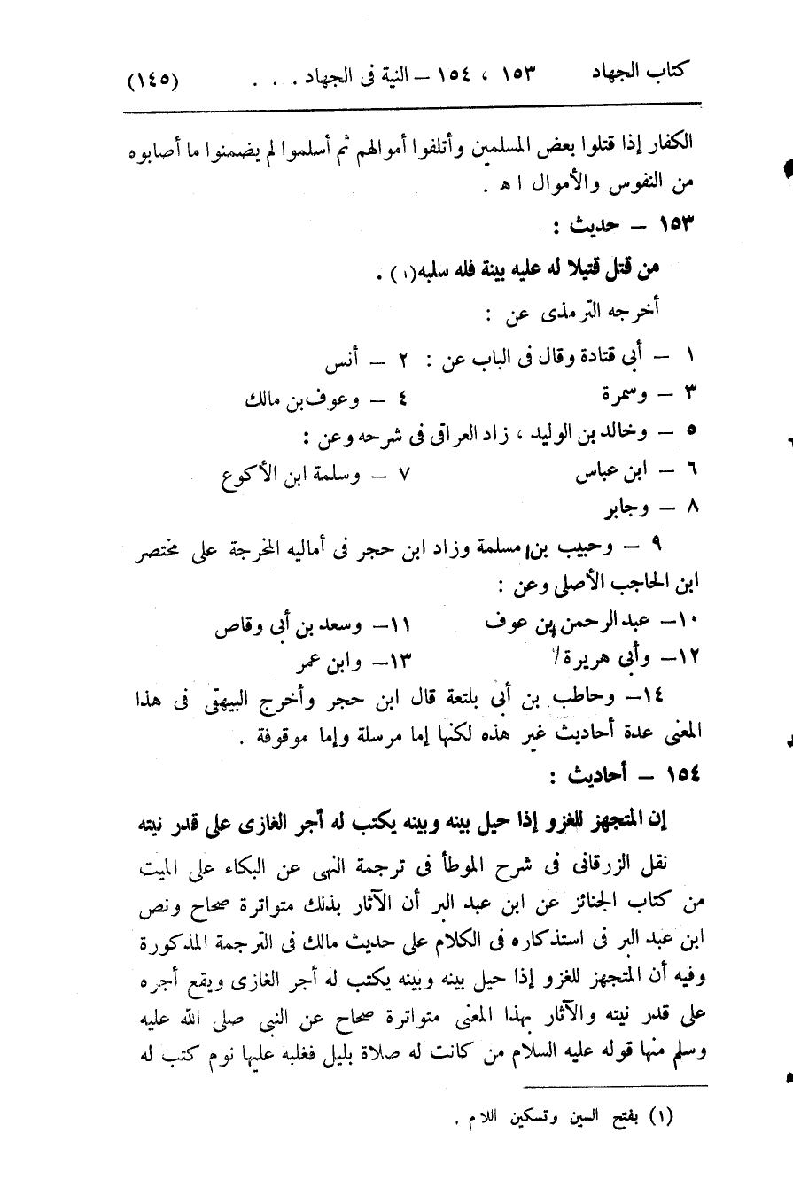 153- (من قتل قتيلاً له عليه بينة فله سلبه) .