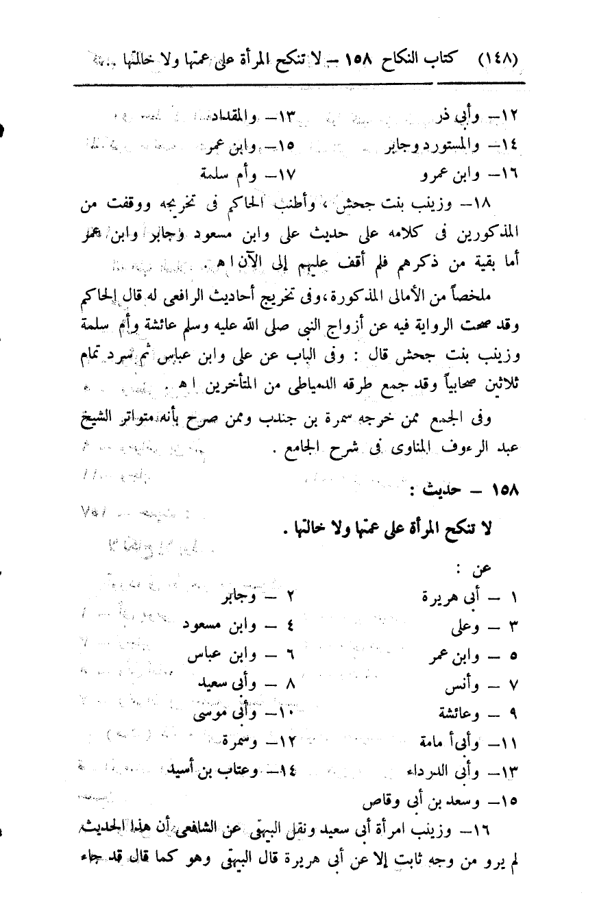 158- (لا تنكح المرأة على عمتها ولا خالتها) .