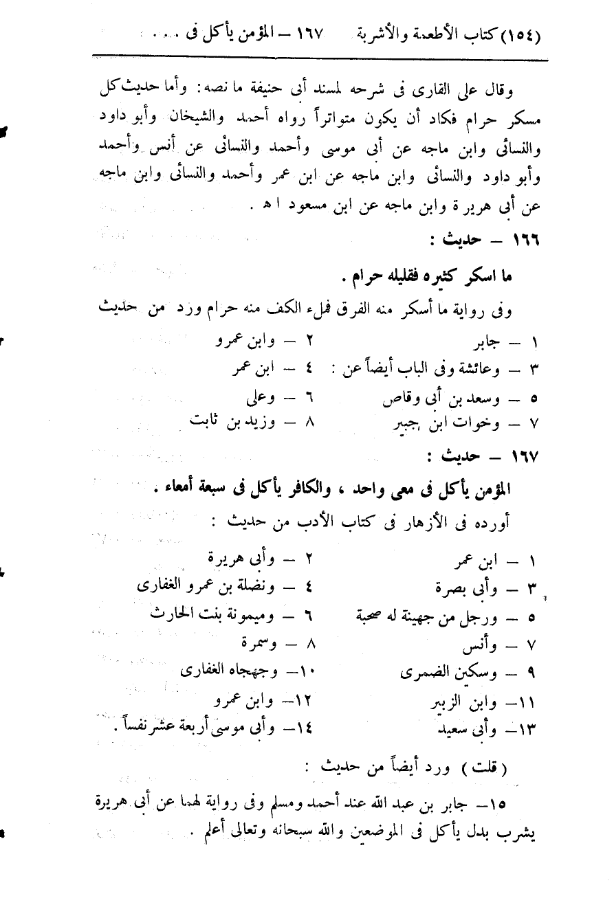 166- (ما أسكر كثيره فقليله حرام) .
