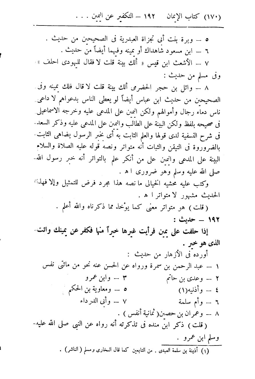 192- (إذا حلفت على يمين فرأيت غيرها خيراً منها فكفر عن يمينك وائت الذي هو خير) .