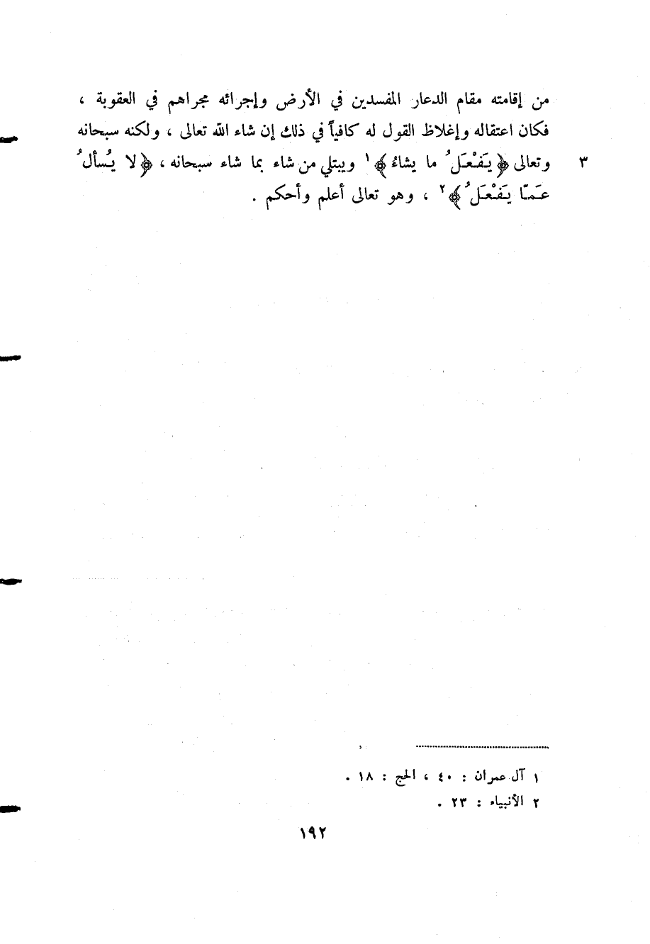 من إقامته مقام الدعار المفسدين في الأرض وإجرائه مجراهم في العقوبة، فكان اعتقاله وإغلاظ القول له كافيا في ذلك إن شاء الله تعالى، ولكنه سبحانه وتعالى: {يَفْعَلُ مَا يَشَاء} (¬1) ويبتلي من شاء بما شاء سبحانه {لا يُسْأَلُ عَمَّا يَفْعَل} (¬2) ، وهو تعالى أعلم وأحكم.