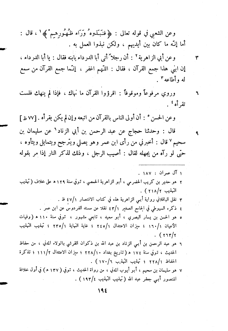 (¬7) هو سليمان بن سحيم، أبو أيوب المدني، من رواة الحديث، توفي "137هـ" في أول خلافة المنصور أبي جعفر عبد الله "تهذيب التهذيب 4/ 193".