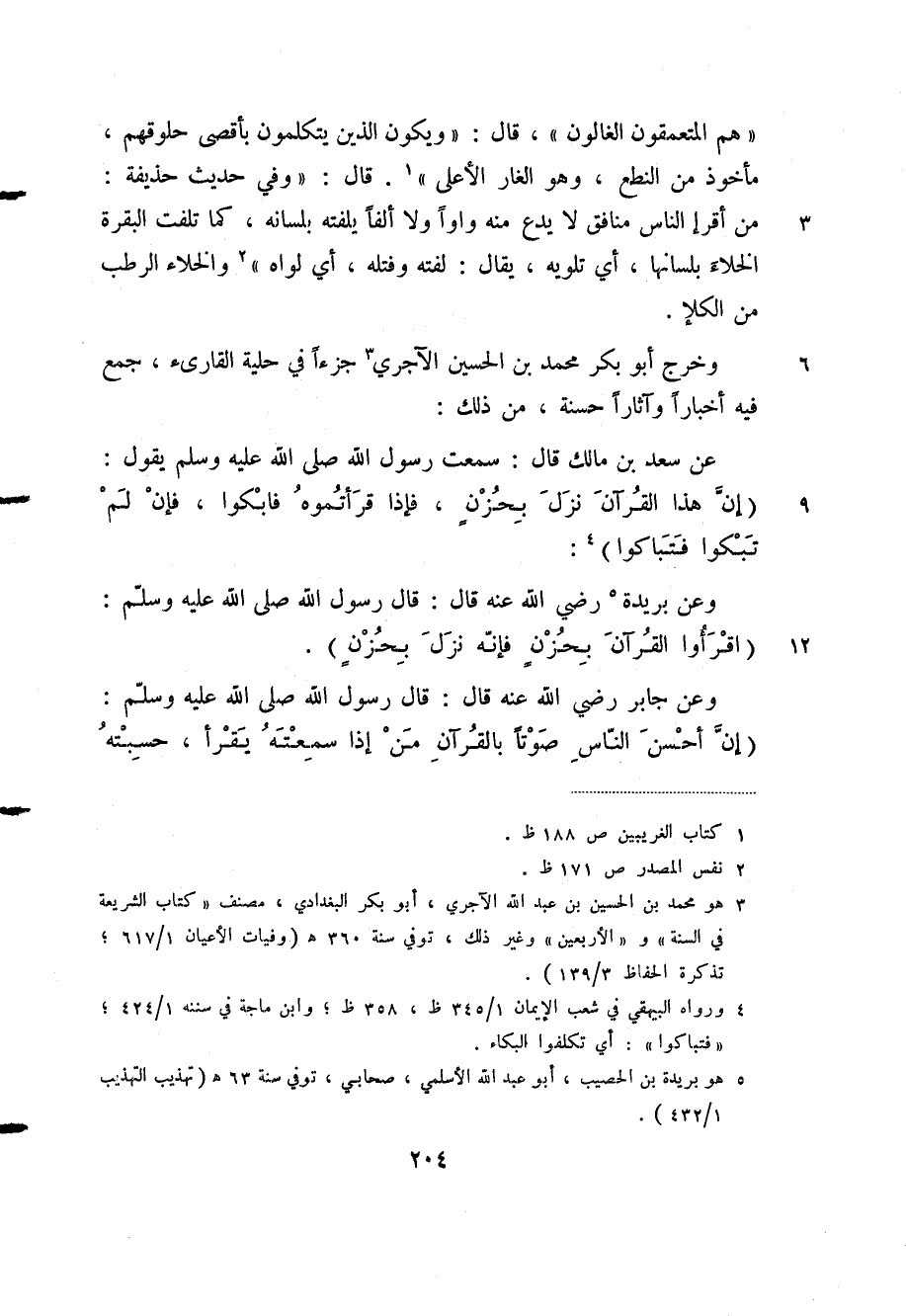(¬3) هو محمد بن الحسين بن عبد الله الآجري، أبو بكر البغدادي، مصنف "كتاب الشريعة في السنة" و"الأربعين" وغير ذلك، توفي سنة 360هـ "وفيات الأعيان 1/ 617، تذكرة الحفاظ 3/ 139".