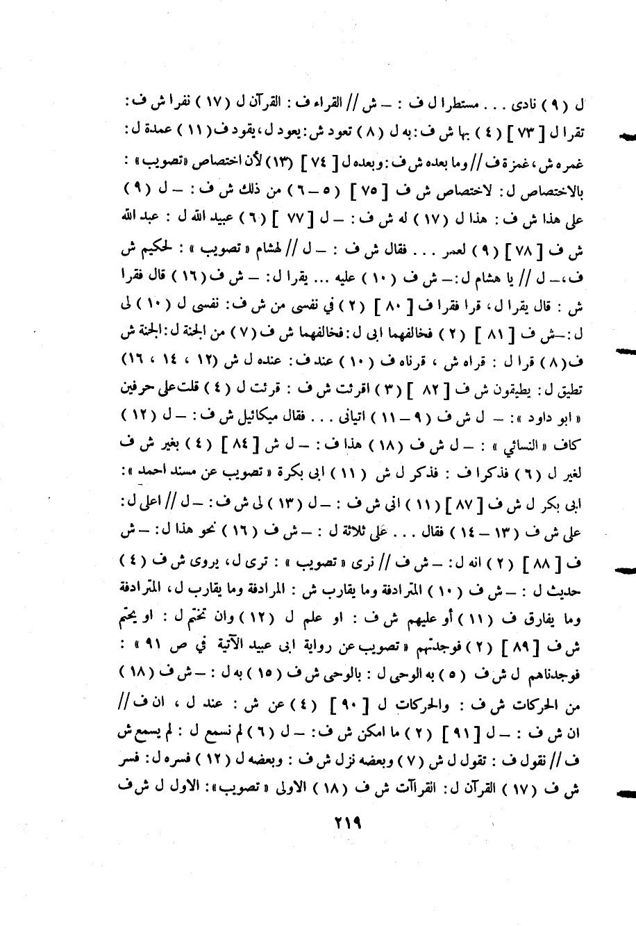 ل "9" نادى ... مستطرا ل ف: ش// القراء ف: القرآن "17" نفرا ش ف: تقرا ل [73] "4" بها ش ف: به ل "8" تعود ش: يعود ل، يقود ف "11" عمدة ل: غمره ش، غمزة ف// وما بعده ش ف: وبعده ل [74] لأن اختصاص "تصويب": بالاختصاص ل: لاختصاص ش ف [75] "5-6" من ذلك ش ف: ل "9" على هذا ش ف: هذا ل "17" له ش ف: ل [77] "6" عبيد الله ل: عبد الله ش ف [78] "9" لعمر ... فقال ش ف: ل// لهشام "تصويب": لحكيم ش ف، ل// يا هشام ل: ش ف "10" عليه ... يقرا له: ش ف "16" قال فقرا ش: قال يقرا ل، قرا فقرا ف [80] "2" في نفسي من ش ف: نفسي ل "10" لي ل: ش ف [81] قراه ش، قرناه ف "10" عند ف: عنده ل ش "12، 14، 16" تطيق له: يطيقون ش ف [82] "3" اقرئت ش ف: قرئت له "4" قلت على حرفين "أبو داود": ل ش ف "9-11" اتياني ... فقال ميكائيل ش ف: ل "12" كاف "النسائي": ل ش ف "18" هذا ف: ل ش [84] "4" بغير ش ف لغير ل "6" فذكرا ف: فذكر ل ش "11" أبي بكرة "تصويب عن مسند أحمد": أبي بكر ل ش ف [87] "11" أني ش ف: ل "13" لي ش ف: ل// أعلى ل: على ش ف "13-14" فقال ... على ثلاثة ل: ش ف "16" نحو هذا ل: ش ف [88] "2" أنه ل: ش ف// نرى "تصويب": ترى له، يروى ش ف "4" حديث ل: ش ف "10" المترادفة وما يقارب ش: المرادفة وما يقار ل، المترادفة وما يفارق ف "11" أو عليهم ش ف: أو علم ل "12" وأن تختم ل: أو يحتم ش ف [89] "2" فوجدتهم "تصويب عن رواية أبي عبيد الآتية في ص91": فوجدناهم ل ش ف "5" به الوحي ل: بالوحي ش ف "15" به ل: ش ف "18" أن ش ف: ل [91] "2" ما امكن ش ف: ل "6" لم نسمع ل: لم يسمع ش ف// نقول ف: تقول ل ش "7" وبعضه نزل ش ف: وبعضه ل "12" فسره ل: فسر ش ف "17" القرآن ل: القراءات ش ف "18" الأولى "تصويب": الأول ل ش ف