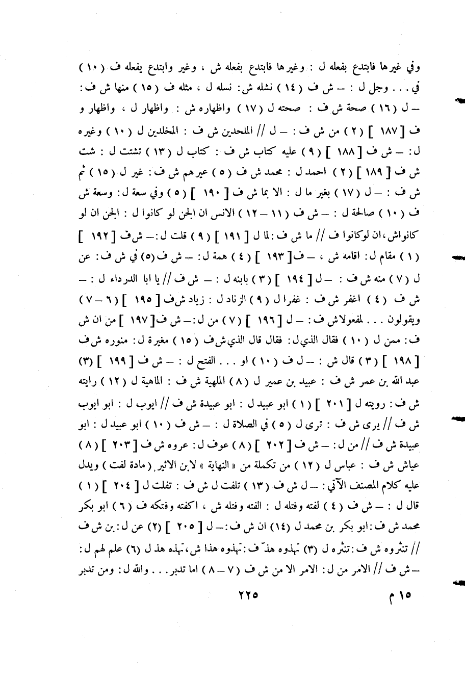 وفي غيرها فابتدع بفعله ل: وغيرها فابتدع بفعله ش، وغير وابتدع يفعله ف "10" في ... ورجل ل: ش ف "14" نشله ش: نسله ل، مثل ف ط15" منها ش ف: ل "16" صحة ش ف: صحته ل "17" وإظهاره ش: وإظهار ل، وإظهار وف [187] "2" من ش ف: ل// الملحدين ش ف: المخلدين ل "10" وغيره ل: ش ف [188] "9" عليه كتاب ش ف: كتاب ل "13" تشتت له: شت ش ف [189] "2" أحمد ل: محمد ش ف "5" عيرهم ش ف: غير ل "15" ثم ش ف: ل "17" بغير ما ل: إلا بما ش ف [190] "5" وفي سعة ل: وسعة ش ف "10" صالحة ل: ش ف "11-12" الإنس أن الجن لو كانوا ل: الجن إن لو كانواش، إن لو كانوا في// ما ش ف: لما ل [191] "9" قلت ل: ش ف [192] "1" مقام ل: إقامة ش، ف [193] "4" بابنه ل: ش ف// يا أبا الدرداء ل: ش ف "4" اغفر ش ف: فرا ل "9" الزناد ل: زياد ش ف [195] "6-7" ويقولون ... لمفعولا ش ف: ل [196] "7" من ل: ش ف [197] من، ش ف: ممن ل "10" فقال الذي له: فقال قال الذي ش ف "15" مغيرة ل: منوره ش ف [198] "3" قال ش: ل ف "10" أو ... الفتح ل: ش ف [199] "3" ش ف: رويته ل [201] أبو عبيد بن عمير ل "8" الملهية ش ف: الماهية ل "12" رايته ش ف: رويته ل [201] أبو عبيد ل: أبو عبيدة ش ف// أيوب ل: أبو أيوب ش ف// يرى ش ف: ترى ل "5" في الصلاة ل: ش ف "10" أبو عبيد ل: أبو عياش ش ف// منل: ش ف [202] "8" عوف ل: عروه ش ف [203] "8" عياش ش ف: عباس ل "12" من تكملة من "النهاية" لابن الأثير "مادة لفت" ويدل عليه كلام المصنف الآي: ل ش ف "13" تلفت ل ش ف: تفلت ل [204] "1" قال ل: ش ف "4" لفته وفتله ل: الفته وفتله ش، اكفته وفتكه ف "6" أبو بكر محمد ش ف: أبو بكر بن محمد ل "14" أن ش ف: ل [205] "2" عن ل: بن ش ف //تنثرهوه شف: تنثره ل "3" تهذوه هذا ف: بهذوه هذا ش، تهذه هذا ل "6" علم لهمل: ش ف// الأمر من ل: الأمر إلامن ش ف "7-8" أما تدبر ... والله ل: ومن تدبر