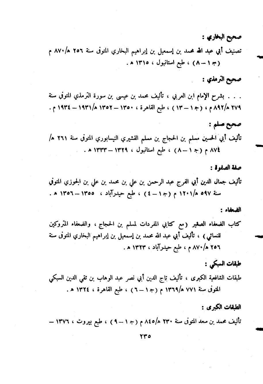 - صحيح الترمذي: بشرح الإمام ابن العربي، تأليف محمد بن عيسى بن سورة الترمذي المتوفى سنة 279هـ/ 892م، "ج1-13"، طبع القاهرة، 1350-1352هـ/ 1031-1934م.