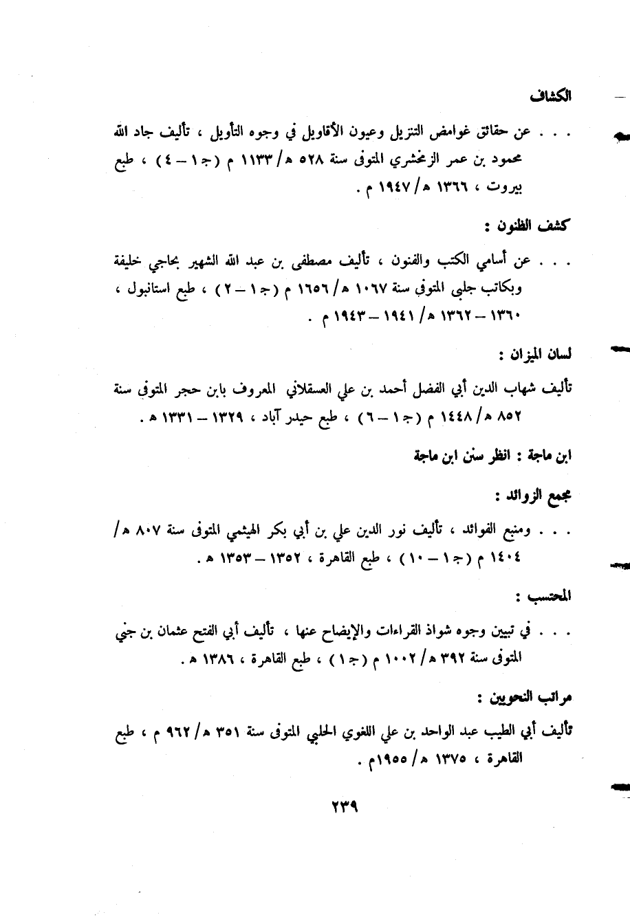 ... عن حقائق غوامض التنزيل وعيون الأقاويل في وجوه التأويل، تأليف جاد الله محمود بن عمر الزمخشري المتوفى سنة 528هـ/ 1133م "ج1-4" طبع بيروت، 1366هـ/ 1947م.