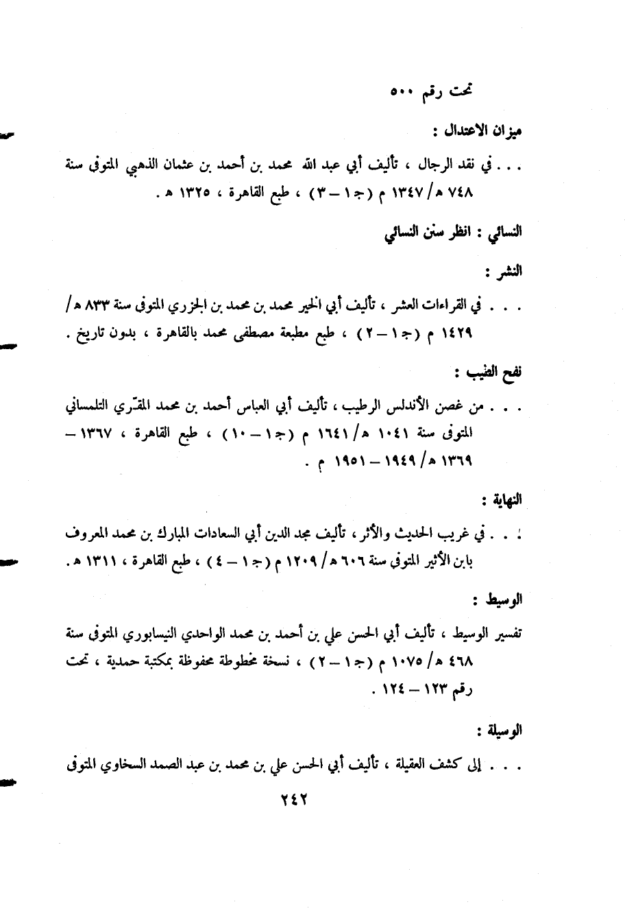 - النهاية: في غريب الحديث والأثر، تأليف مجد الدين أبي السعادات المبارك بن محمد المعروف بابن الأثير المتوفى سنة 606هـ/ 1209م "ج1-4"، طبع القاهرة، 1311هـ.