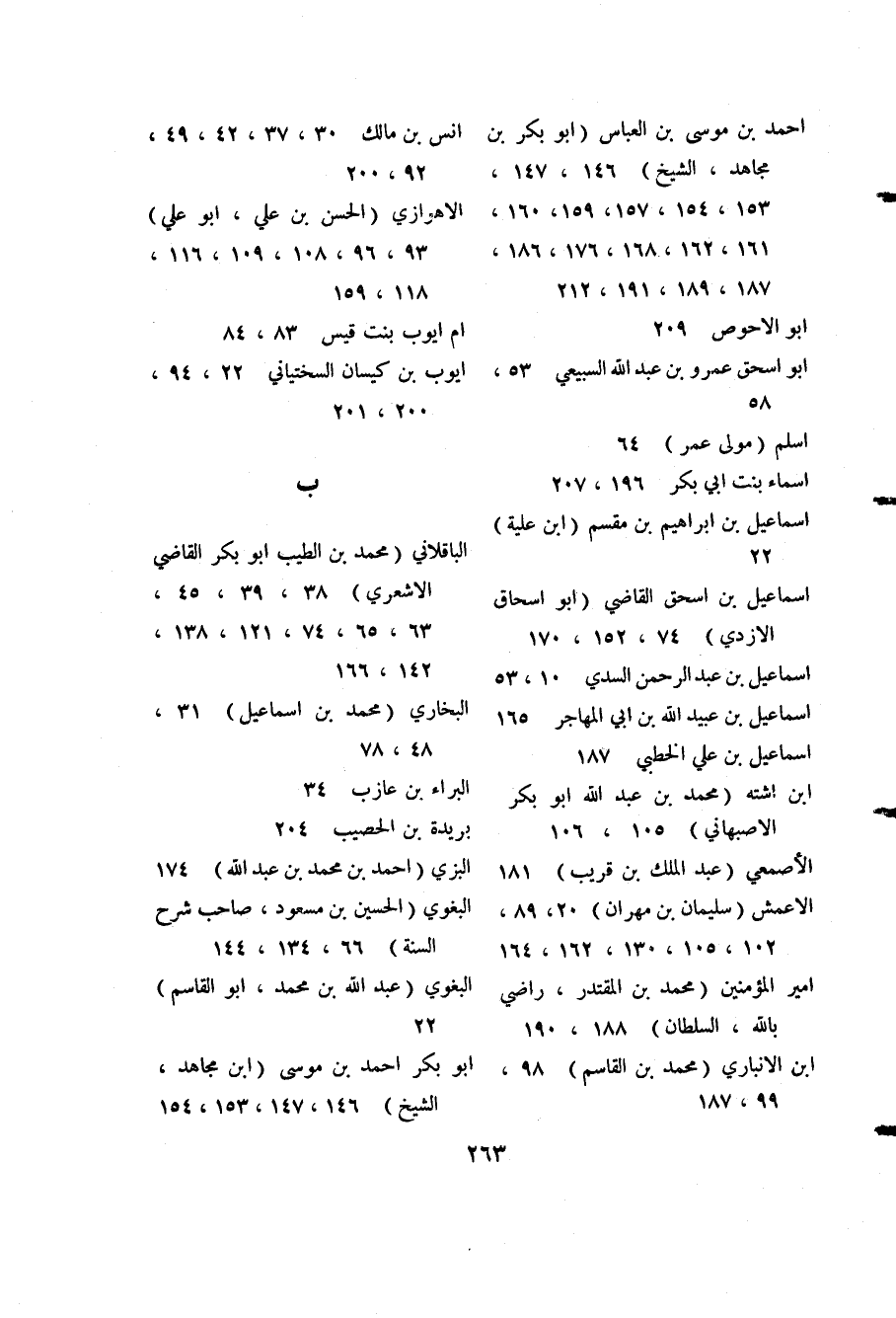 أحمد بن موسى بن العباس "أبو بكر بن مجاهد، الشيخ" 146، 147، 153، 154، 157، 159، 160، 161، 162، 168، 176، 186، 187، 189، 191، 212