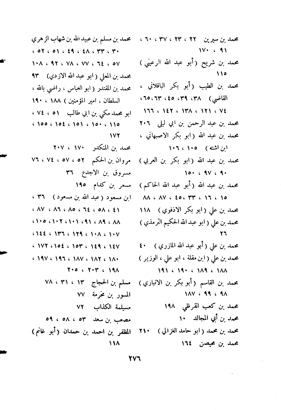 محمد بن محيصن 164 محمد بن مسلم بن عبيد الله بن شهاب الزهري 30، 33، 48، 49، 51، 52، 57، 64، 77، 78، 92، 108
