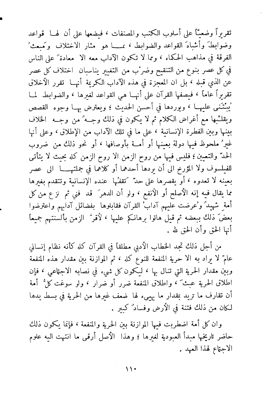 وكل من يبحث في تاريخ العرب وآدابهم، وينفذ إلى ذلك من حيث تنفذ به الفطنة وتتأتى حكمة الأشياء فإنه يرى كل ما سبق على القرآن - من أمر الكلام العربي وتاريخه - إنما كان توطيداً