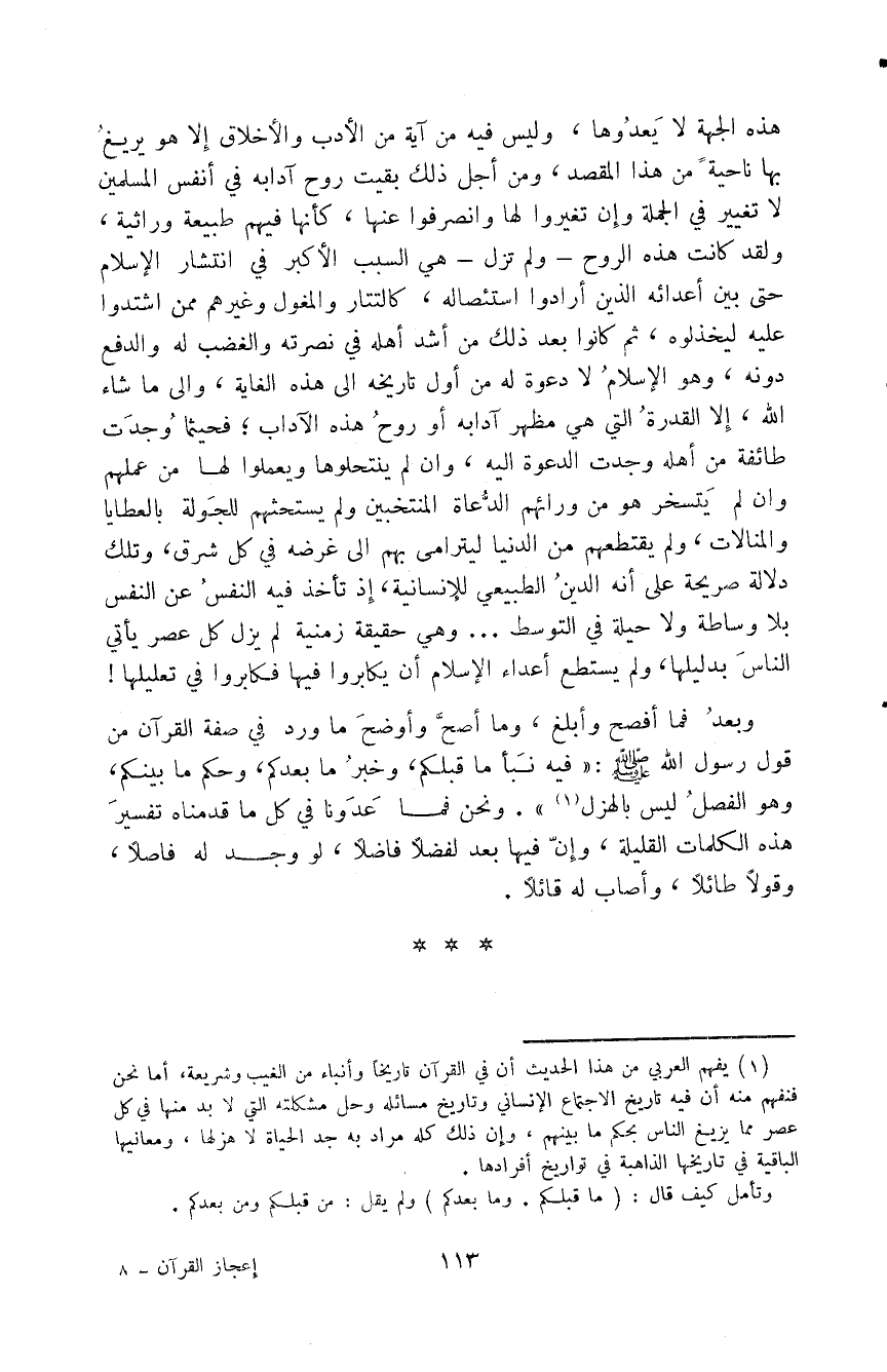 وما عهدنا رجلاً من علماء التاريخ قد أهاب بأمة طبيعية كالعرب، ذات بأس وصرامة وحمية