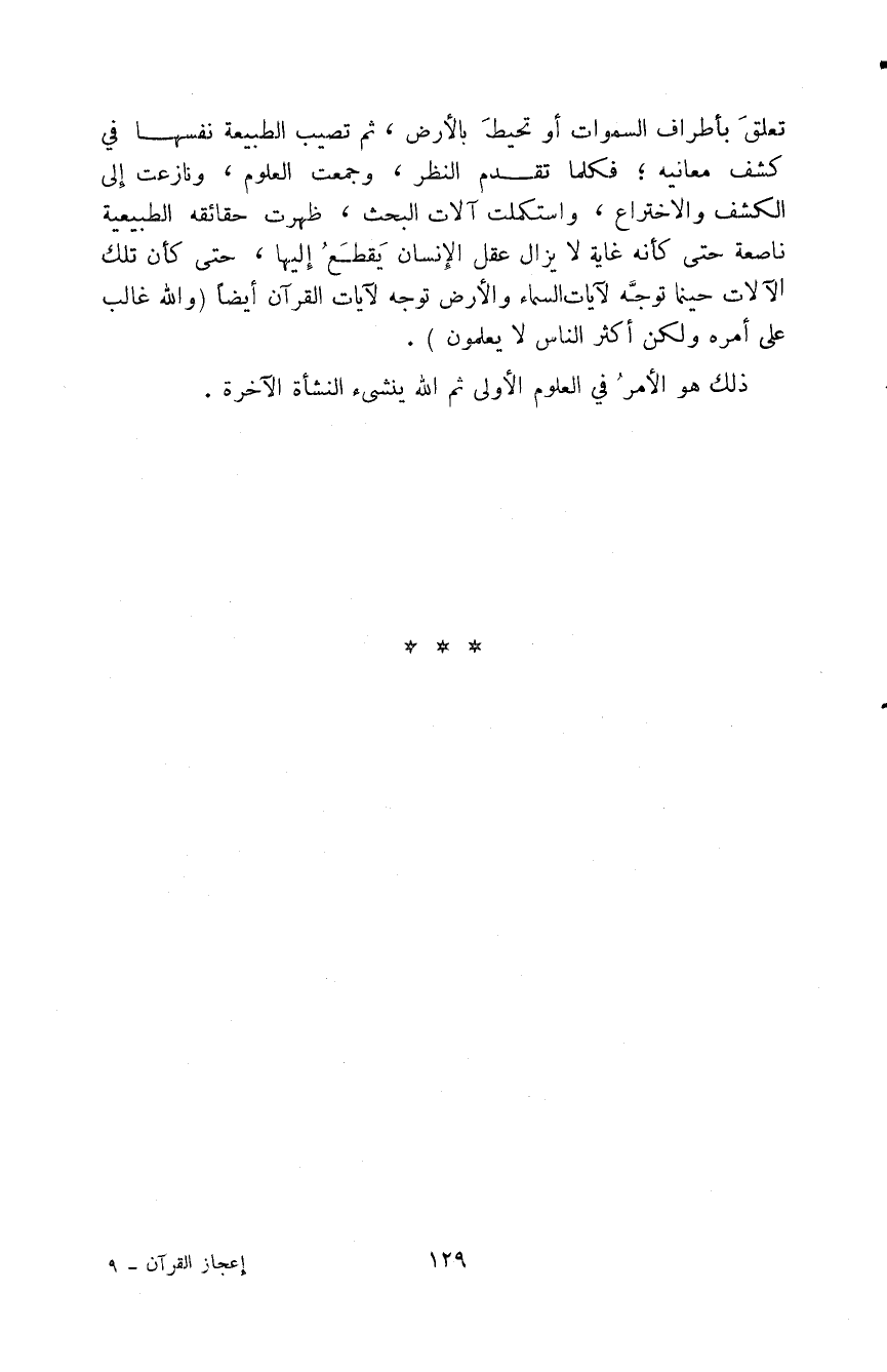 ولا يعقل أن يكون الرجل قد أسز في نفسه غير ما أبدى من هذا القول ولم يضطره شيء إليه، ولا أعجله أمر عن نفسه ولا كان خلو رسالته منه تضييعاً ولا ضعفاً، ولا نشك في أنه كان يستسر بهنات مما يضعف اعتقاده ولكن أمرَ القرآن أمر على حدة؛ فما هو عند البرهان عليه وراء