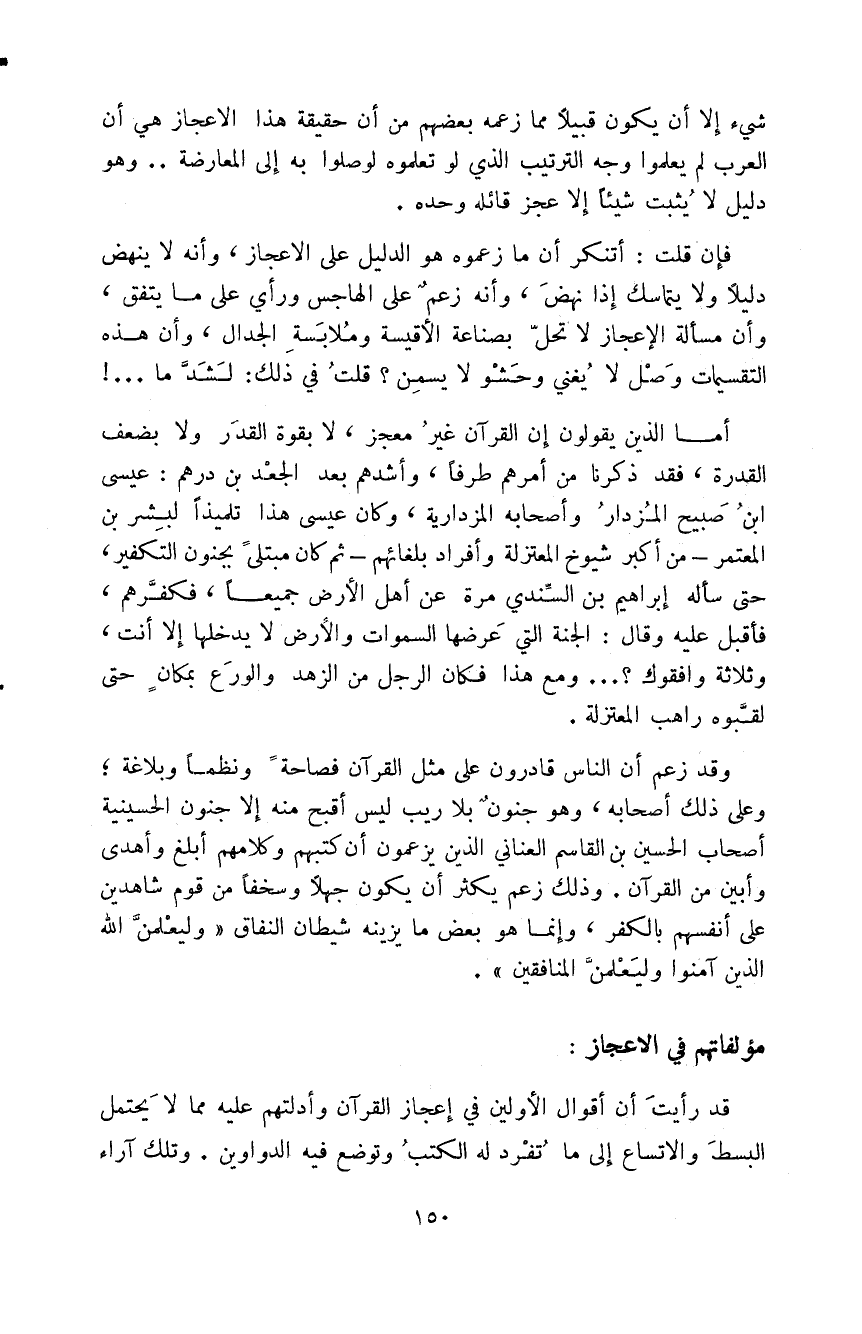 صفاء حسه ورقة نفسه. وهو لعَمر الله أمر يوسعُ فكر العاقل ويملأ صدر المفكر، ولا نرى جهة تعليله ولا نصحح منه تفسيراً إلا ما قدمنا من إعجاز النظم بخصائصه الموسيقية، وتساوُق هذه