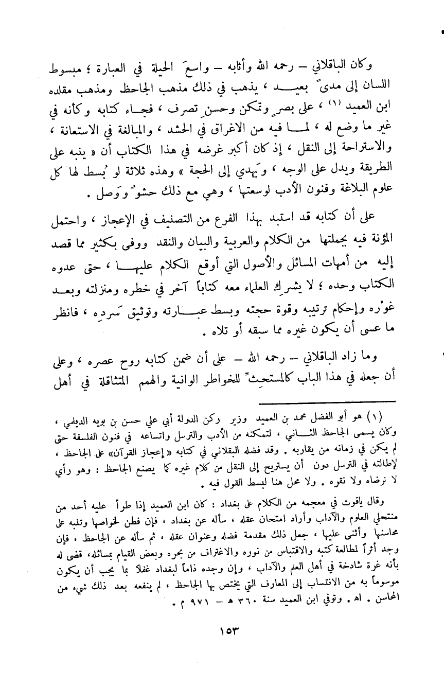 وإنَّما مثل ذلك كمن يفتتن بالجمال، فهو إذا رأى الوجه الجميل كانت نظرته إليه كلاماً نفسياً لو جهد البلغاء جهدهم على أن يحكموه بالعبارة كما هو في نفسه لأعيتهم وسائل البلاغة أن يمهدوا منها لهذه الحالة النفسية، ولجاؤوا من كلامهم بالحسِّ المغمور الذي لا يعدم النقص