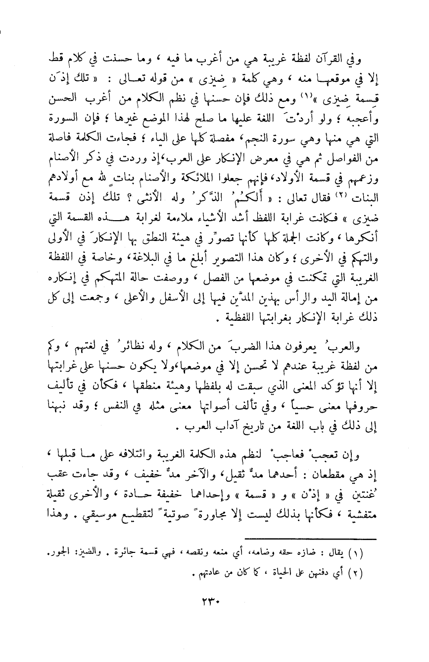كالمجاز البعيد الذي يغوص إلى الأعماق الخيالية، وضروب الإحالة، وفساد الوضع المعنوي، وفنون الصنعة، وما إليها مما هو فاش في كلام البلغاء، يعين جفاء البداوة على بعضه، ورقة الحضارة على بعضه، وهو في الجهتين باب واحد.