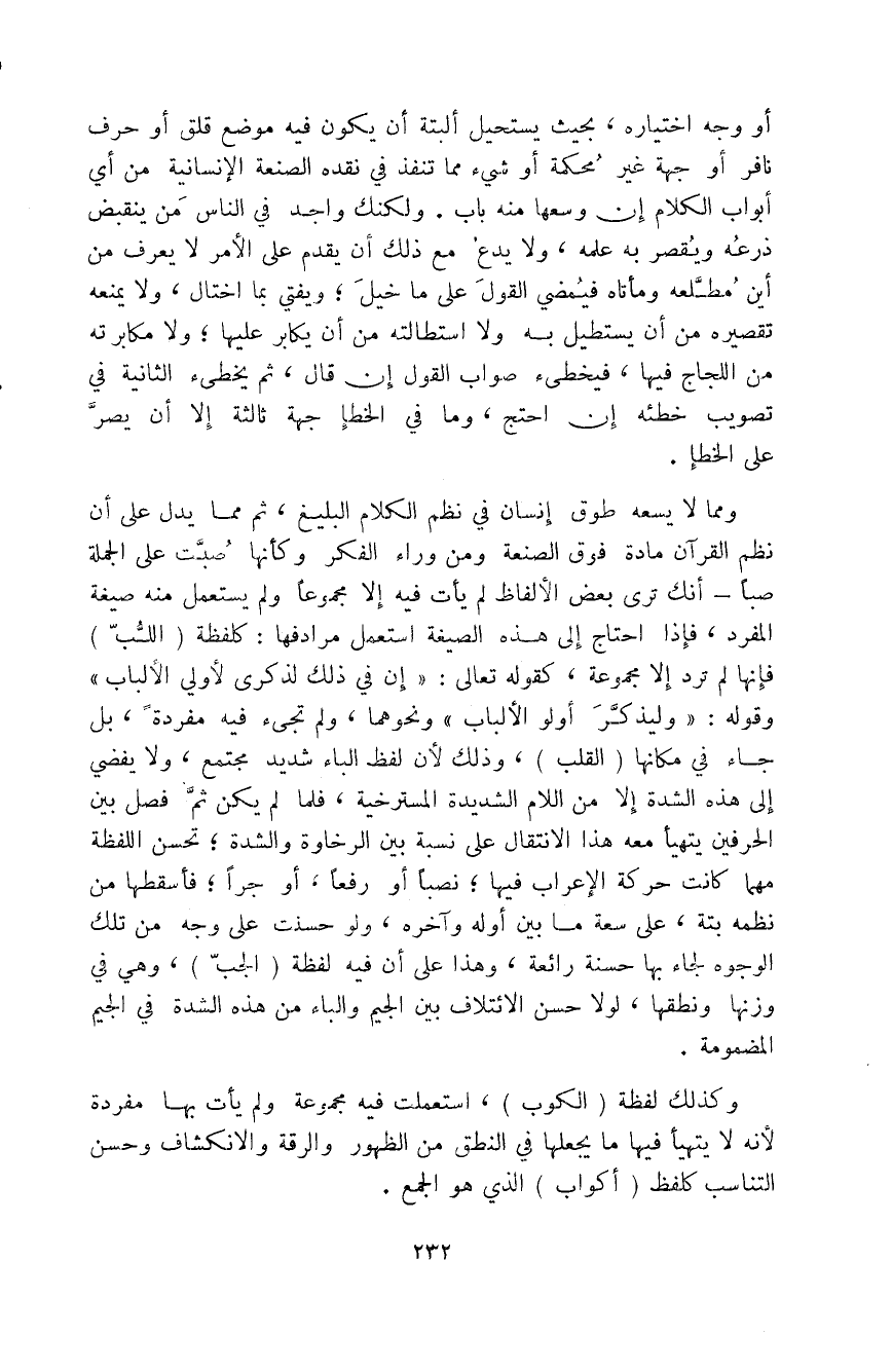 وإذا خطر الفكر الضئيل في مثل هذه الحقيقة السامية، فقل إنا خطرَة طيف، وإذا اجتمع للقلم سوادٌ في تلك السماء العالية، فقل إنما هي سحابة صيف، ولعمر الله كيف نضرب بالغاية على تلك البلاغة التي لا تحدُّ، وكيف نمضي بعد أن كل حد الفكر ووقفنا عند هذا " الحدِّ "!
