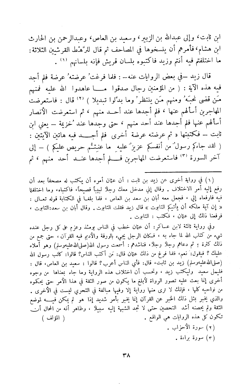فلما كانت الطيرة والاختلاف لعهد عثمان، وأشفقوا من الضلال في معَاسف الرأي ومعاني حملوا الناسَ عليها حملاً وكتبوا بها المصاحف كما تقدم.