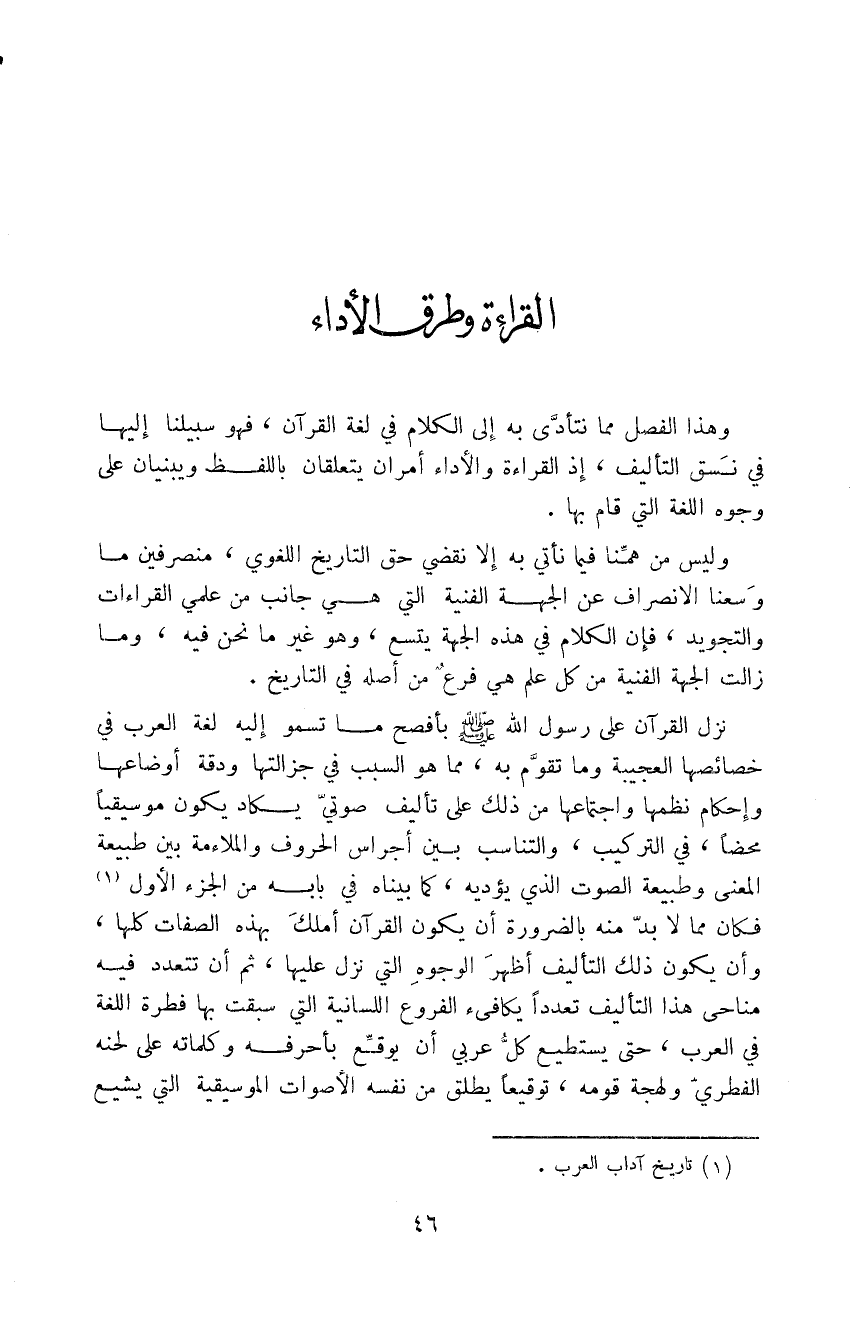 وههنا أصل آخر، وهو أن القرآن لو نزل بغير ما ألفَه النبي - صلى الله عليه وسلم - من اللغة القرشية وما اتصل بها، كان ذلك مَغمزاً فيه، إذ لا تستقيم لهم المقابلة حينئذ بين القرآن وأساليبه، وبين ما يأثرونه من