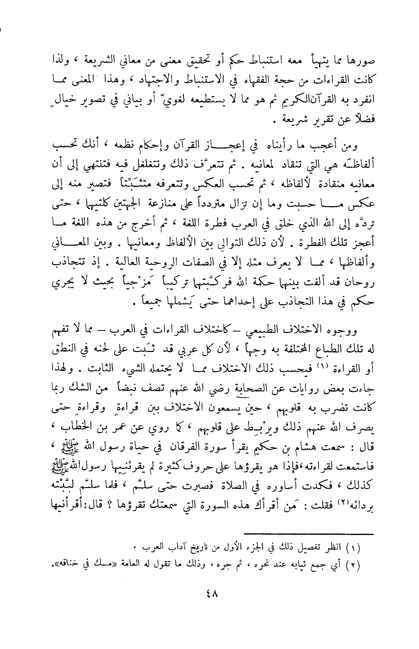 جماعة واحدة، كما وقع ذلك من بعد؛ فجرت لغة القرآن على أحرف مختلفات في منطق الكلام، كتحقيق الهمز وتخفيفه، والمد والقَصر، والفتح والإمالة وما بينهما، والإظهار والإدغام؛ وضم