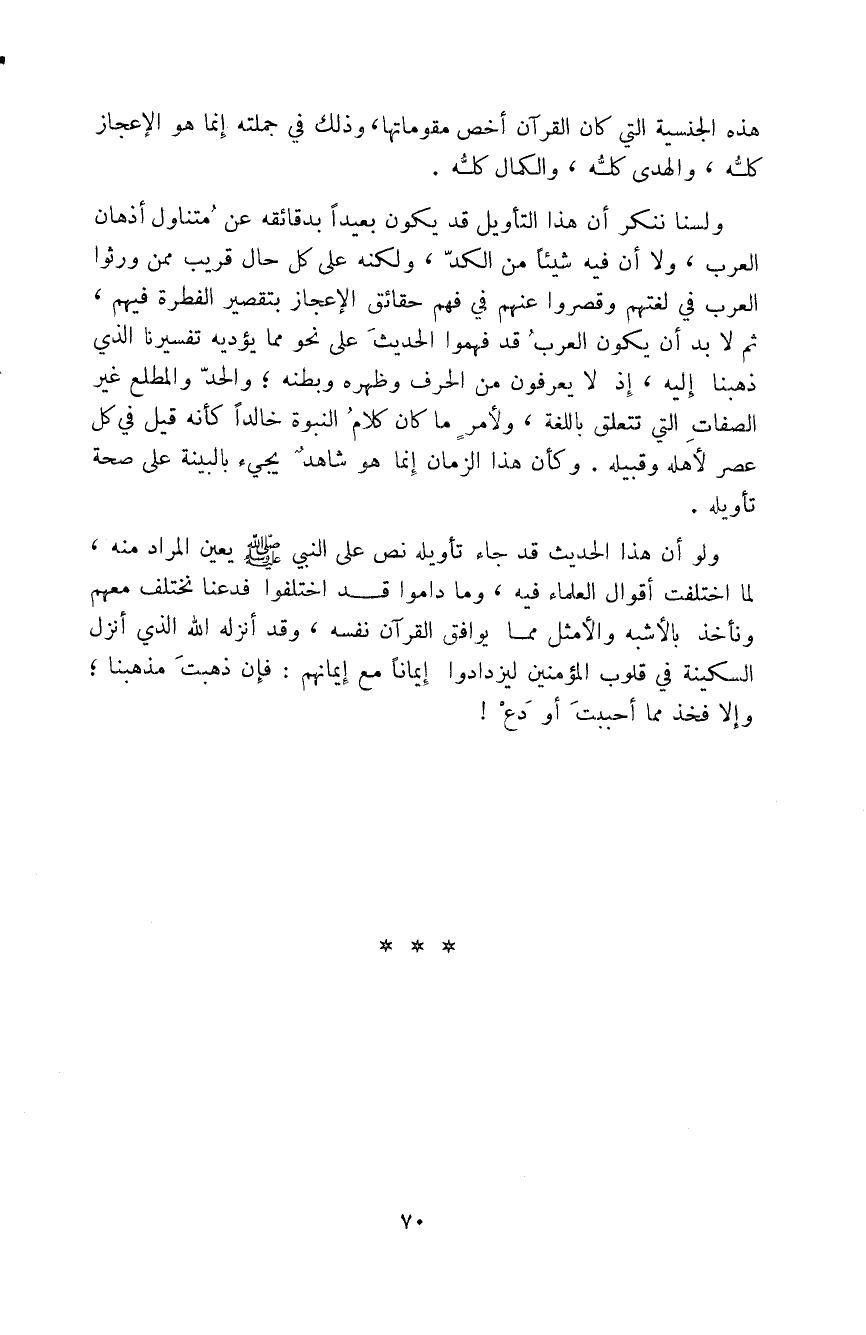 أو الفاسدَ أو الضال، فتتمه وتقيمه وتصلحه وتتنصحُ إليه على طريق من الجدل والمدافعة، والبرهان، إن هي أغنت في قليل لم تُغن في كثير، وإن أقنعت العقل لم تبلغ من القلب مبلغاً،.