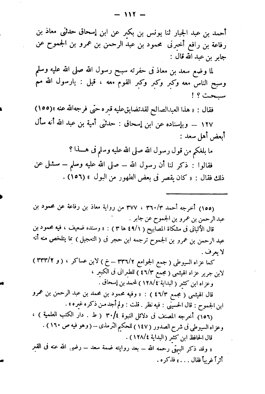 127 - (114) وَبِإِسْنَادِهِ عَنْ أَبِي إِسْحَاقَ، حَدَّثَنِي أُمَيَّةُ بْنُ عَبْدِ اللَّهِ، أَنَّهُ سَأَلَ أبَعْضَ أَهْلِ سَعْدٍ: مَا بَلَغَكُمْ مِنْ قَوْلِ رَسُولِ اللَّهِ صَلَّى اللهُ عَلَيْهِ وَسَلَّم فِي هَذَا؟ فَقَالُوا: ذُكِرَ لَنَا أَنَّ رَسُولَ اللَّهِ صَلَّى اللهُ عَلَيْهِ وَسَلَّم سُئِلَ عَنْ ذَلِكَ فَقَالَ: «كَانَ يُقَصِّرُ فِي بَعْضِ الطُّهُورِ مِنَ الْبَوْلِ»
