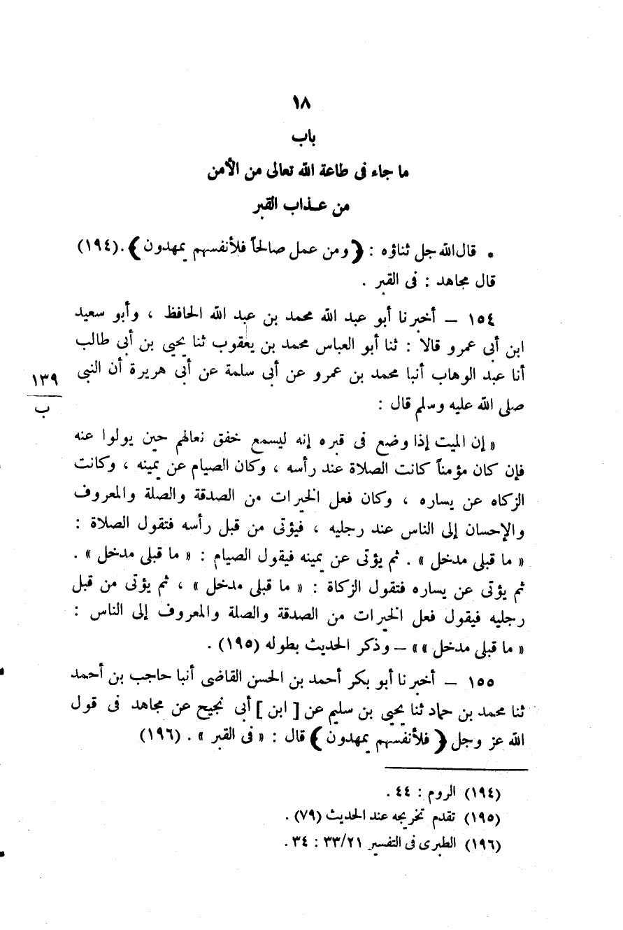[18] بَابُ مَا جَاءَ فِي طَاعَةِ اللَّهِ تَعَالَى مِنَ الْأَمْنِ مِنْ عَذَابِ الْقَبْرِ
