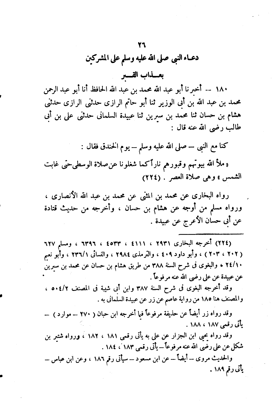 [26] دُعَاءِ النَّبِيِّ صَلَّى اللهُ عَلَيْهِ وَسَلَّمَ عَلَى الْمُشْرِكِينَ بِعَذَابِ الْقَبْرِ