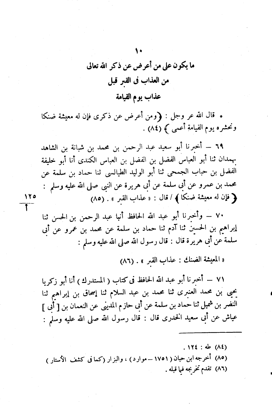 [10] باب مَا يَكُونُ عَلَى مَنْ أَعْرَضَ عَنْ ذَكَرِ اللَّهِ تَعَالَى مِنَ الْعَذَابِ فِي الْقَبْرِ قَبْلَ عَذَابِ يَوْمِ الْقِيَامَةِ