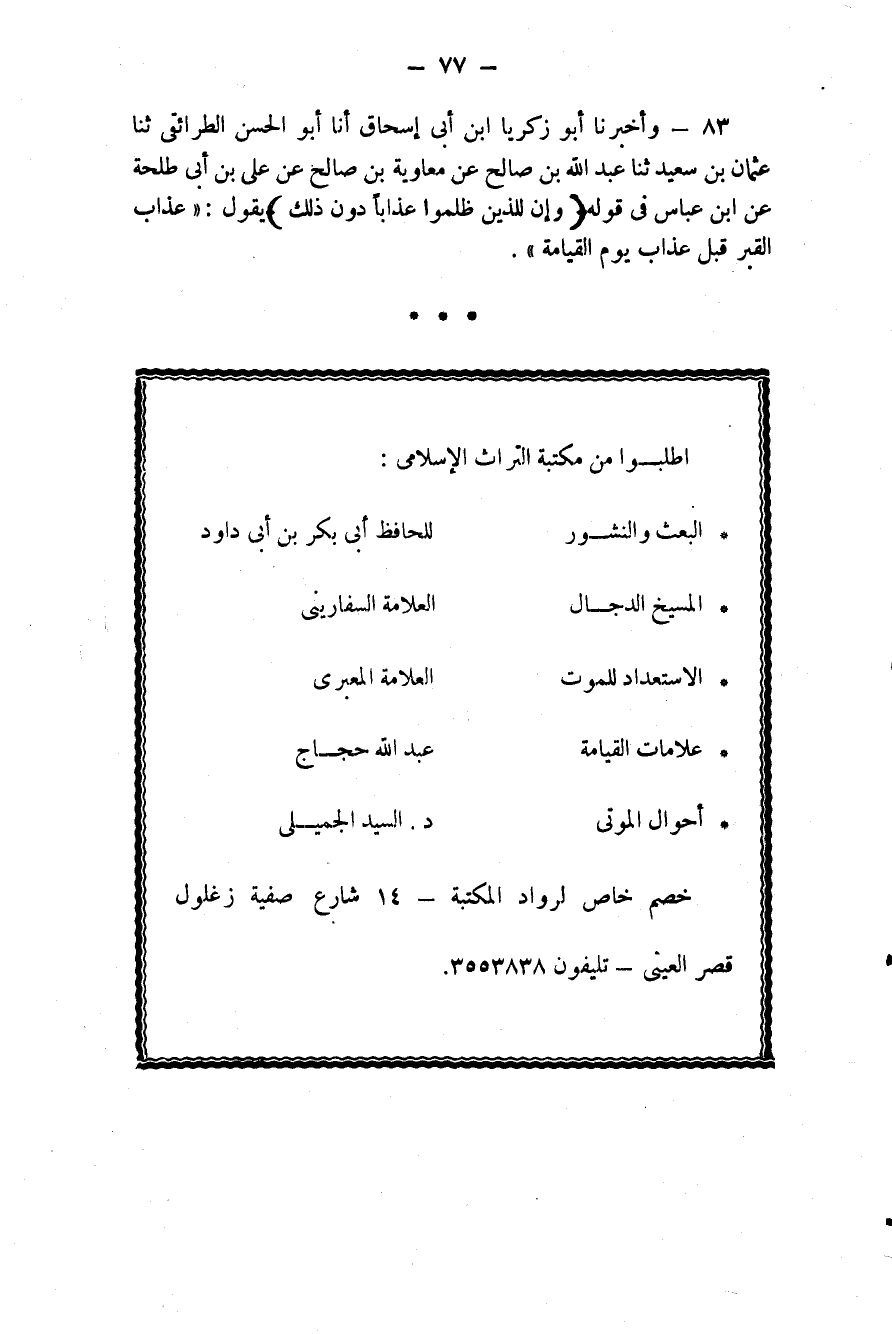 كتاب إثبات عذاب القبر للبيهقي - مكتبة التراث الإسلامي