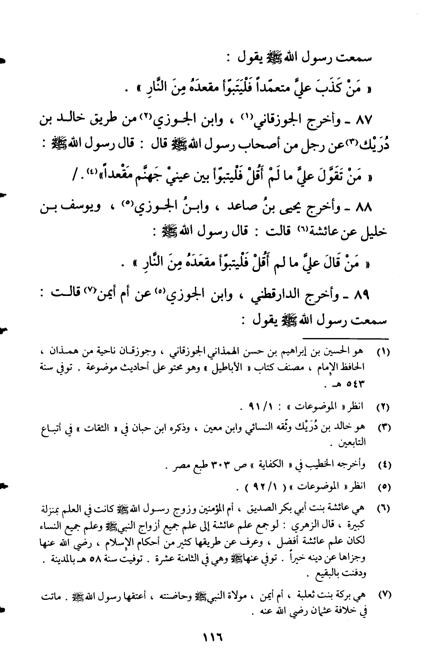 وَأخرج الْعقيلِيّ فِي مُقَدّمَة كِتَابه الضُّعَفَاء عَن عَائِشَة قَالَت