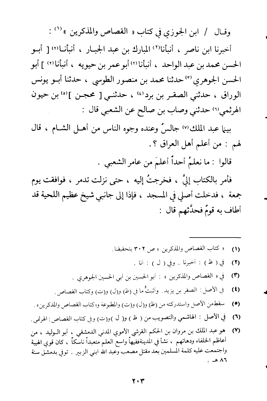 وَأخرج ابْن الْجَوْزِيّ فِي كتاب الْقصاص والمذكرين عَن عبد الله بن خباب بن الْأَرَت قَالَ مر بِي أبي وَأَنا عِنْد رجل يقص فَلم يقل لي شَيْئا حَتَّى أتيت الْبَيْت فاتزر